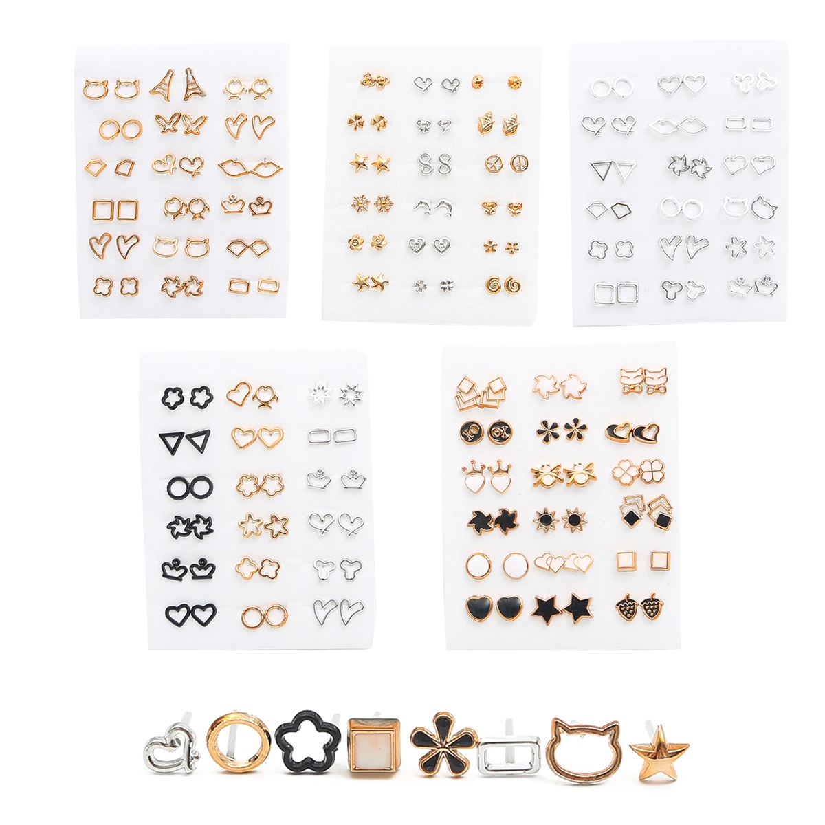 Mix Style Small Stud Earrings SetGirls Women Cute Heart Child Earring Fashion Jewelry Gift