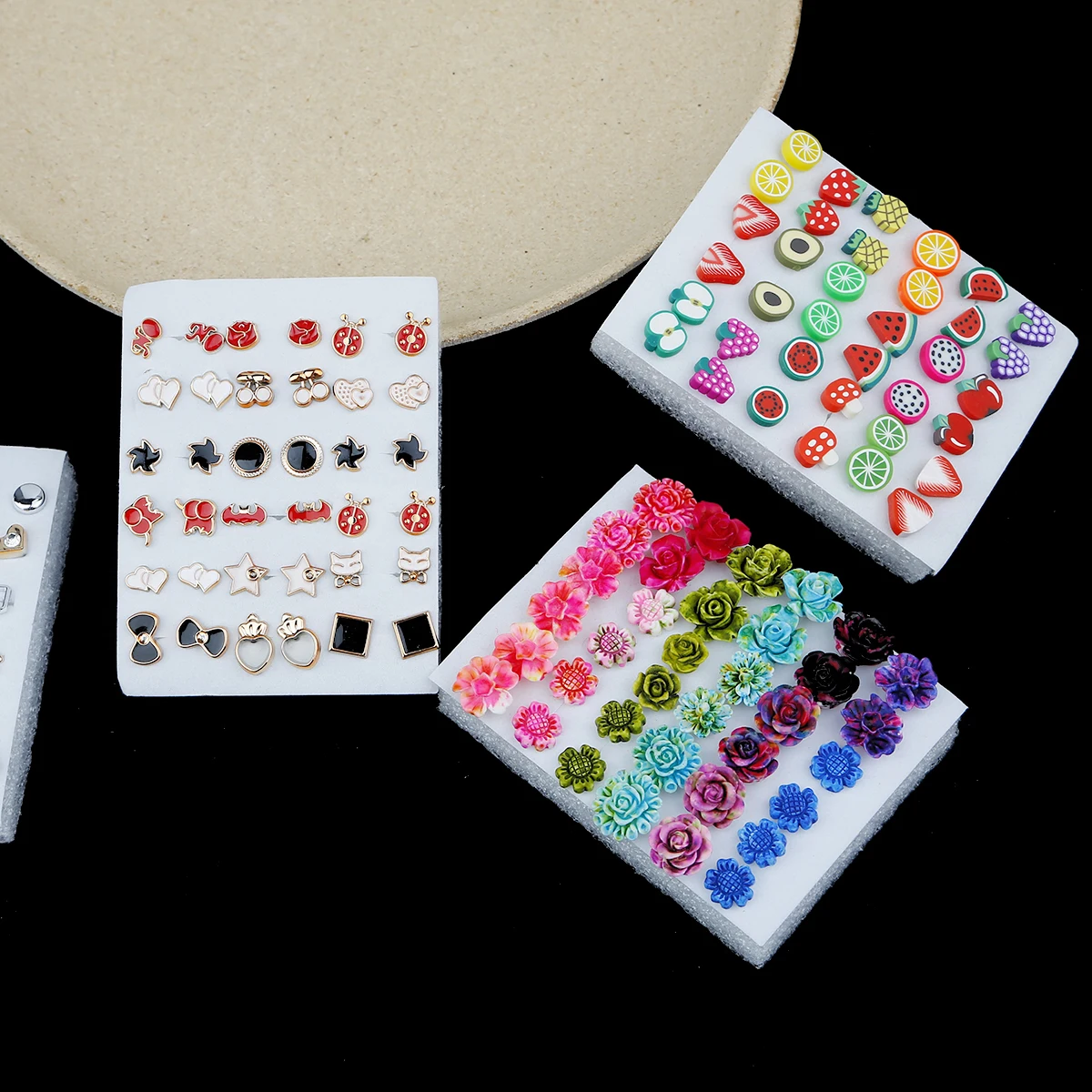 Small Plastic Stud Earrings SetsWomen Butterfly Bowknot Flower Heart Earrings