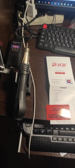Фен пришёл достаточно быстро, есть подозрение что ремонтировали, саморезы крепящие светоиндикацию с сорванными шлицами, на основной плате по всей видимости меняли транзистор, а так же со стороны дорожек впаяна цепочка из стабилитрона и диода, по какой то причине отсутствует зуммер, хотя мне он и не нужен. Керамический каркас нагревательного элемента имеет трещину через всё тело, то есть сломан, в принципе на работе это не отражается. Теперь о положительном, не смотря на ложку дегтя, функциональность не нарушена, пайка а точнее демонтаж смд компонентов прошёл на ура. изначально на пределе 300 градусов, завышал на примерно на 40, поправил термопару у сопла и теперь всё замечательно. В заключении, в место того что бы открыть диспут, поставлю на одну звезду меньше. Покупкой почти доволен. Покупать или нет решать вам.