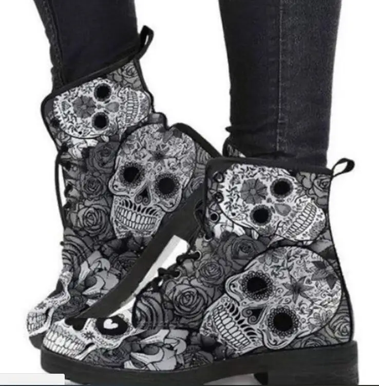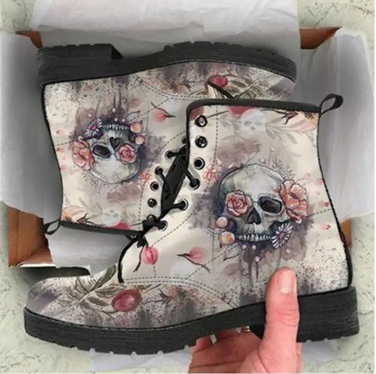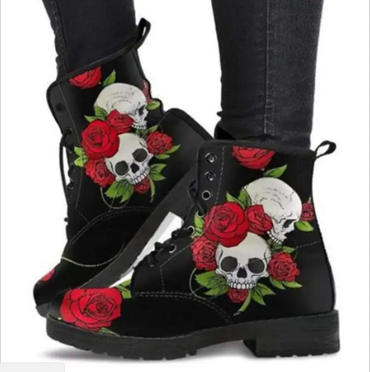 Ботинки Martin женские осенние и зимние новые 2021 британские модные женские сапоги для инструментов высокие женские сапоги с принтом черепа и цветов