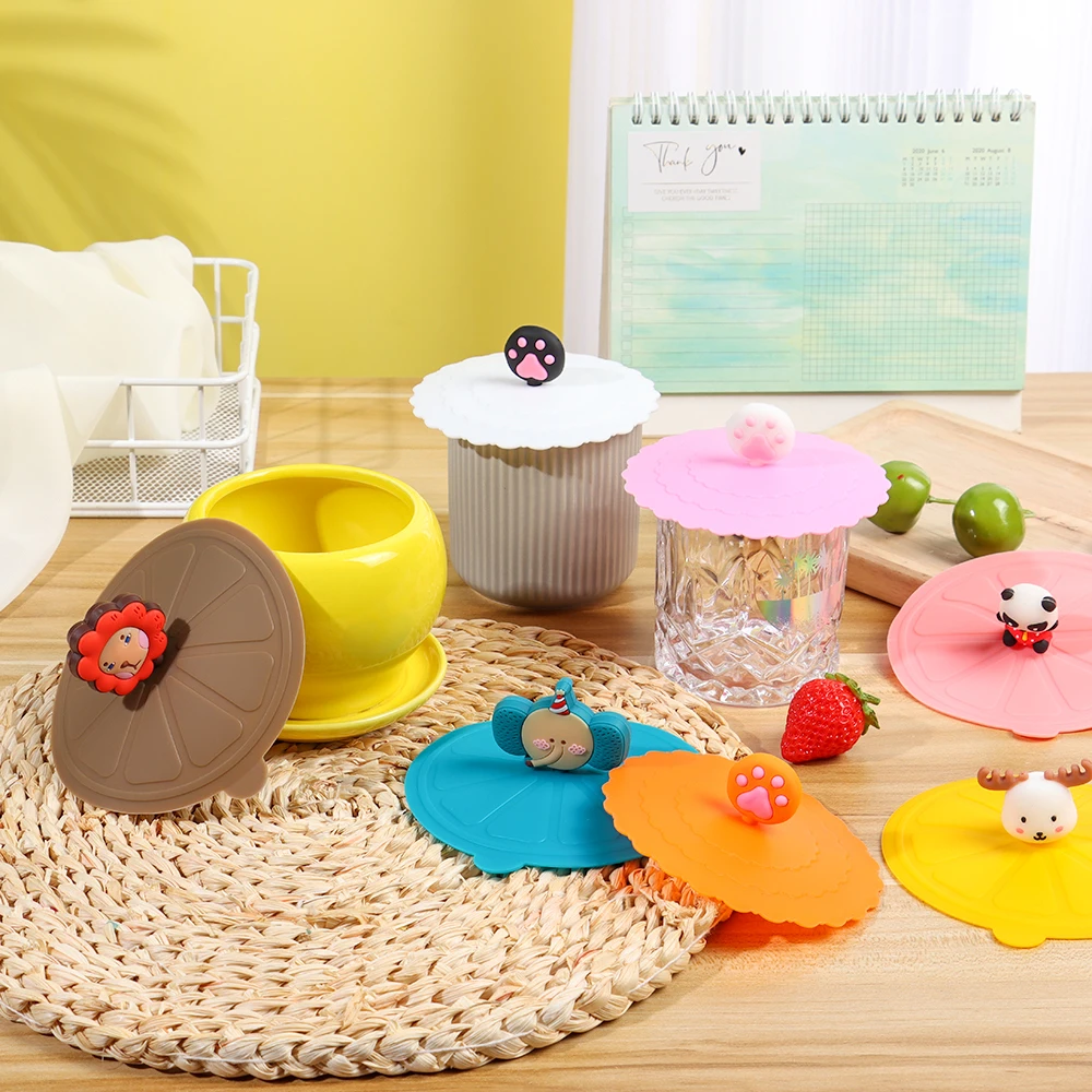 1 шт., силиконовая крышка для чашки из пищевого силикона, милая многоразовая Пылезащитная крышка на присоске, герметичная крышка для чайных кофейных крышек, аксессуары для чашки