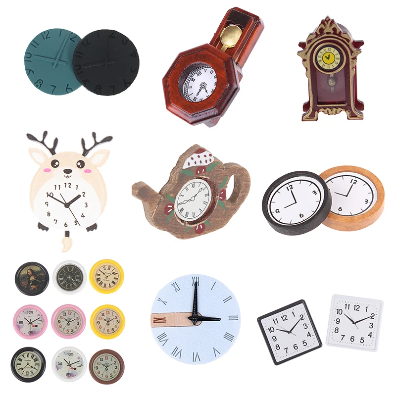 Горячая Распродажа 1:12 настенные часы для кукольного домика из смо...