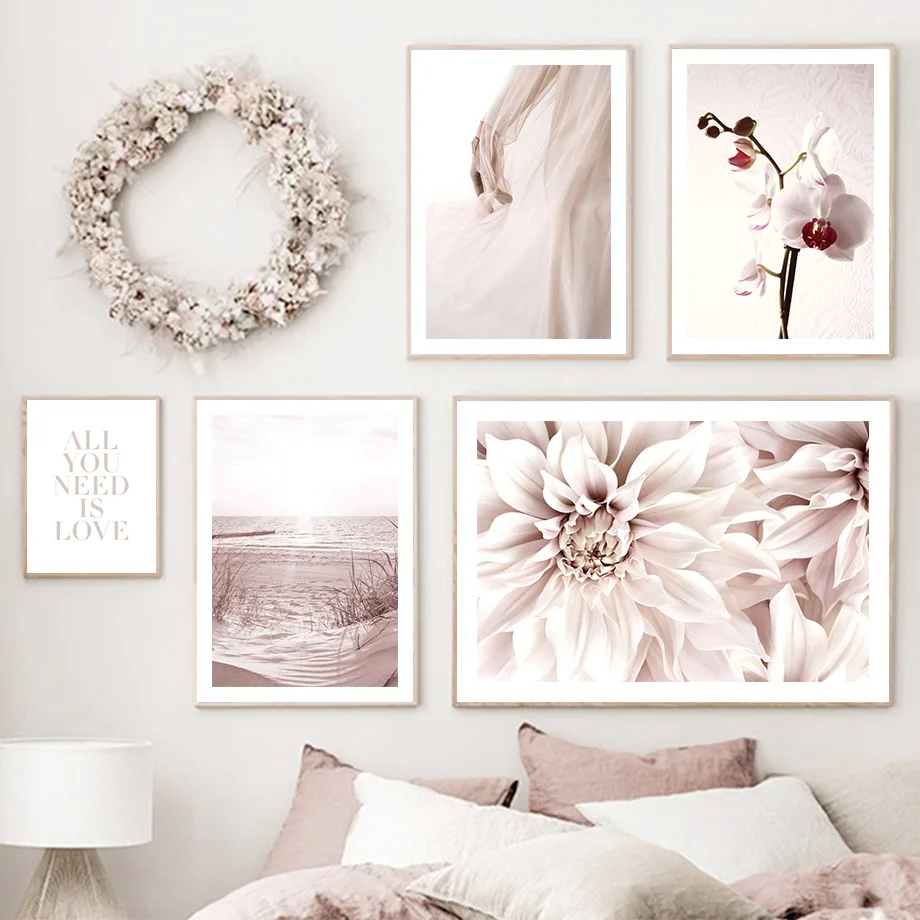 Морской пляж, цветок, тростник, девушка, цитаты, настенная Картина на холсте, скандинавские постеры и принты, настенные картины для гостиной, домашний декор