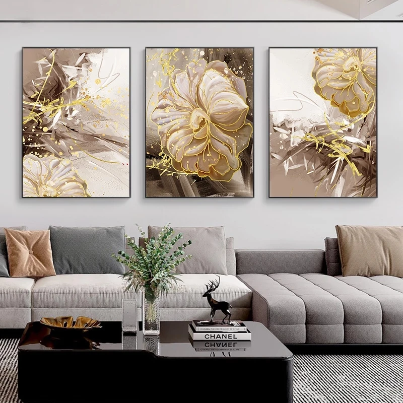 Абстрактная Картина на холсте с цветами из золотой фольги, настенный плакат с цветочным принтом, современное роскошное украшение для гостиной, картины, домашний декор