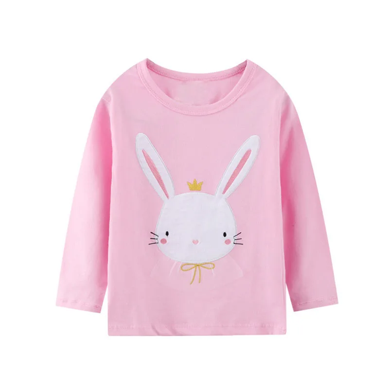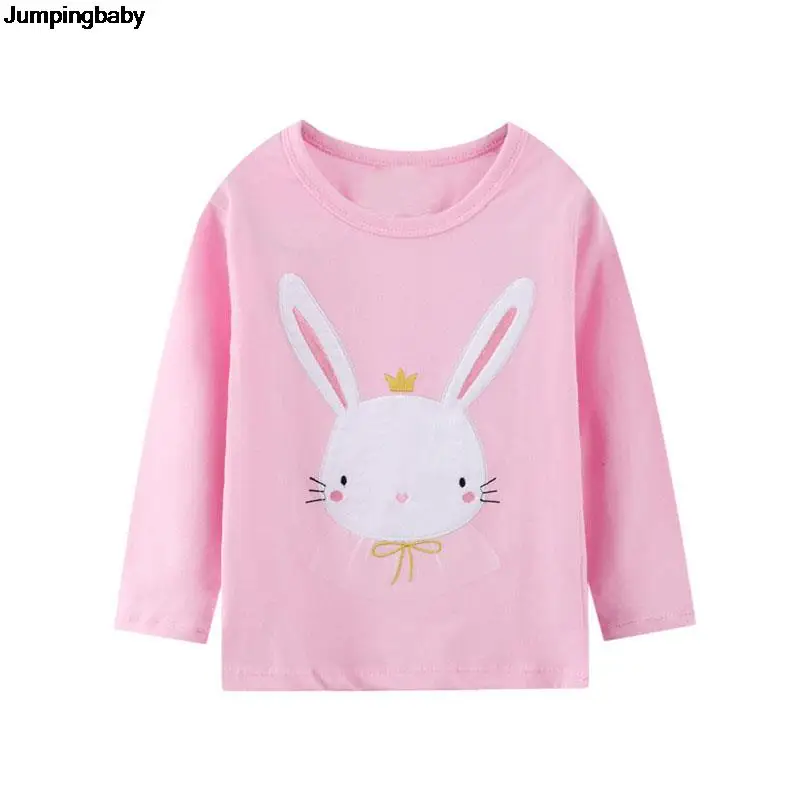 2021 футболки для девочек, Милая футболка с кроликом, детская одежда, футболка с единорогом, Рубашки, Топы с длинным рукавом для девочек, футболка
