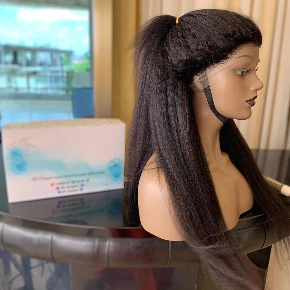 Парики Yaki из натуральных прямых человеческих волос, с фронтальной...