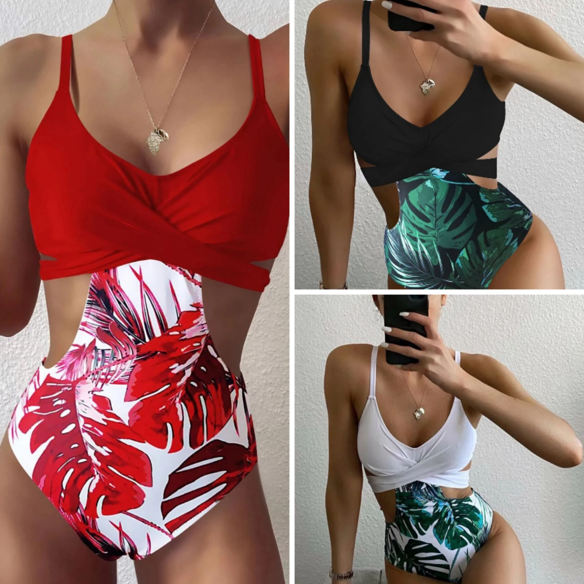 Тропический тропический стиль, бикини с листьями, фотосексуальный купальник с перекрестными лямками, Цельный купальник, бикини, Пляжное плавание
