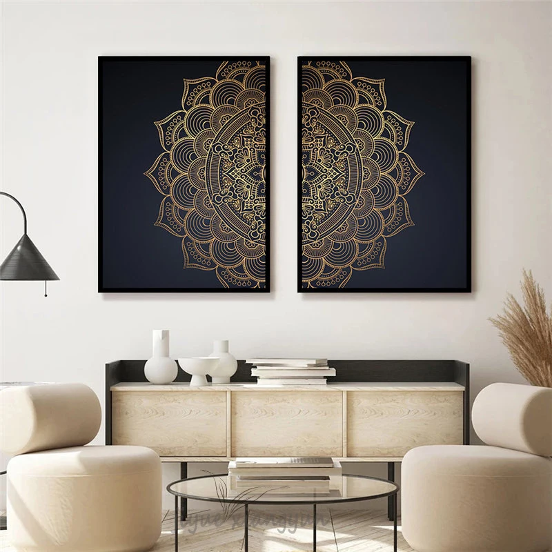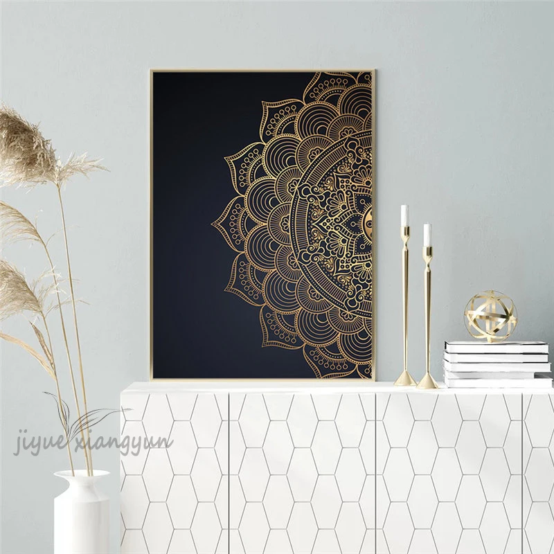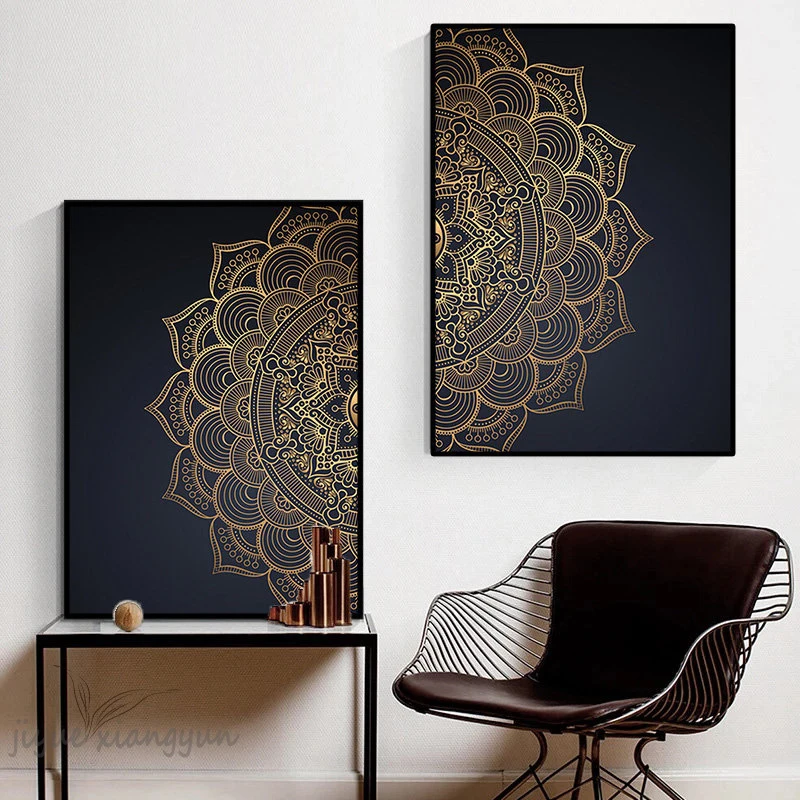 Абстрактные постеры, Черное золото, Современная мандала, Картина на холсте, настенная Художественная печать, картины для гостиной, спальни, интерьера, домашнего декора