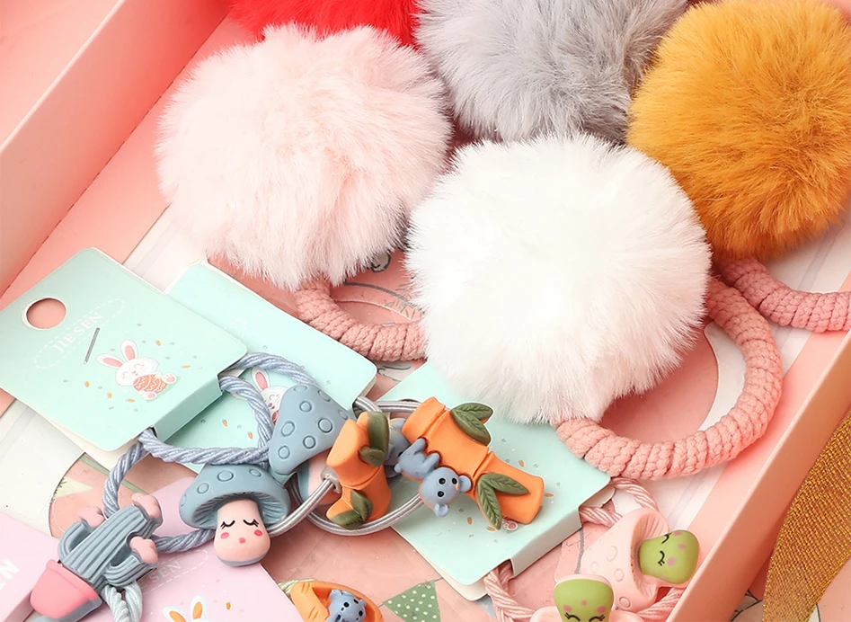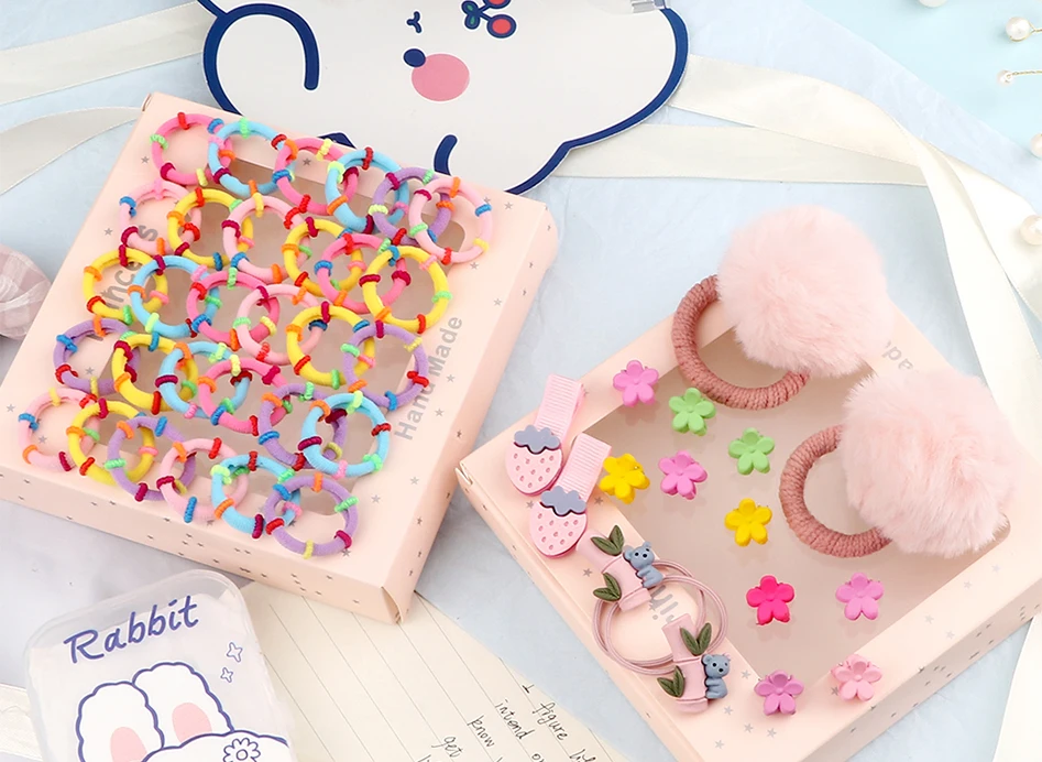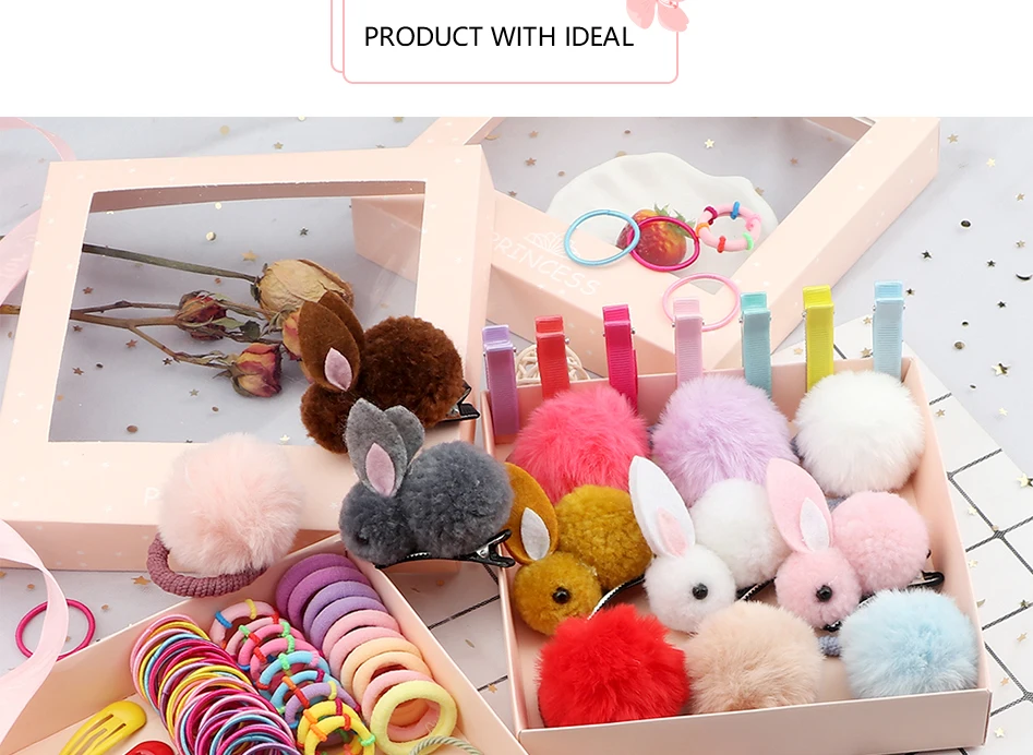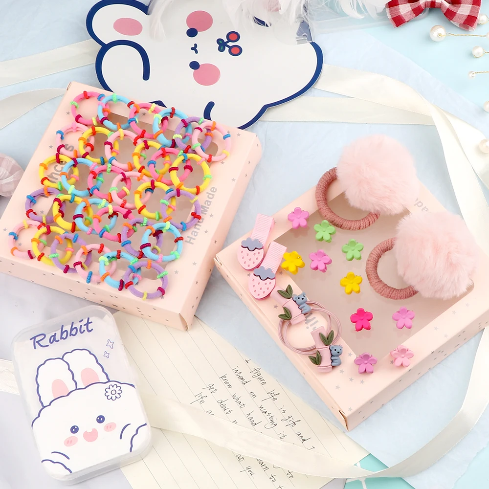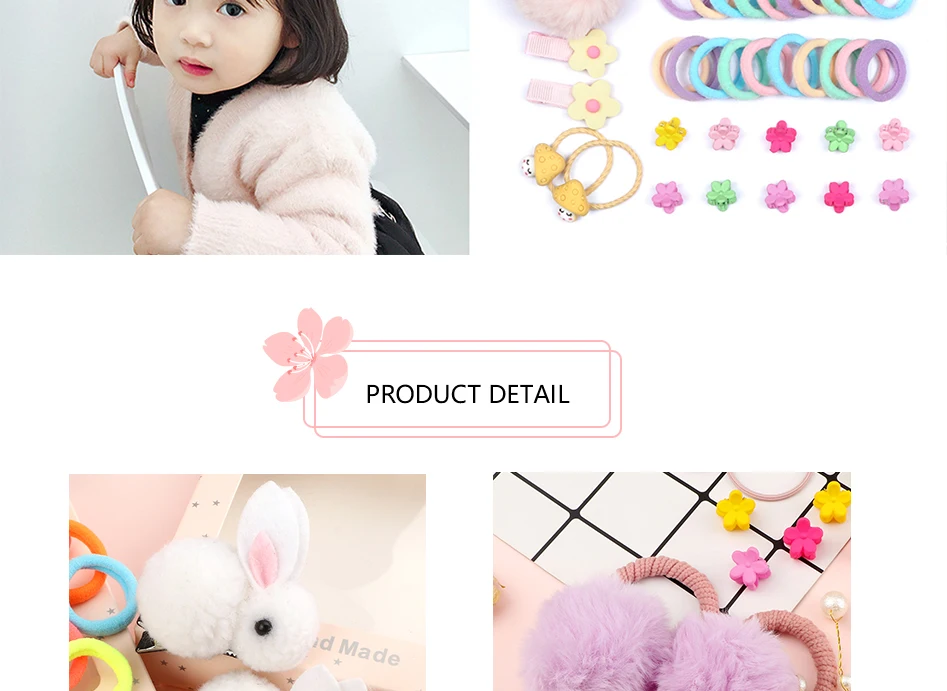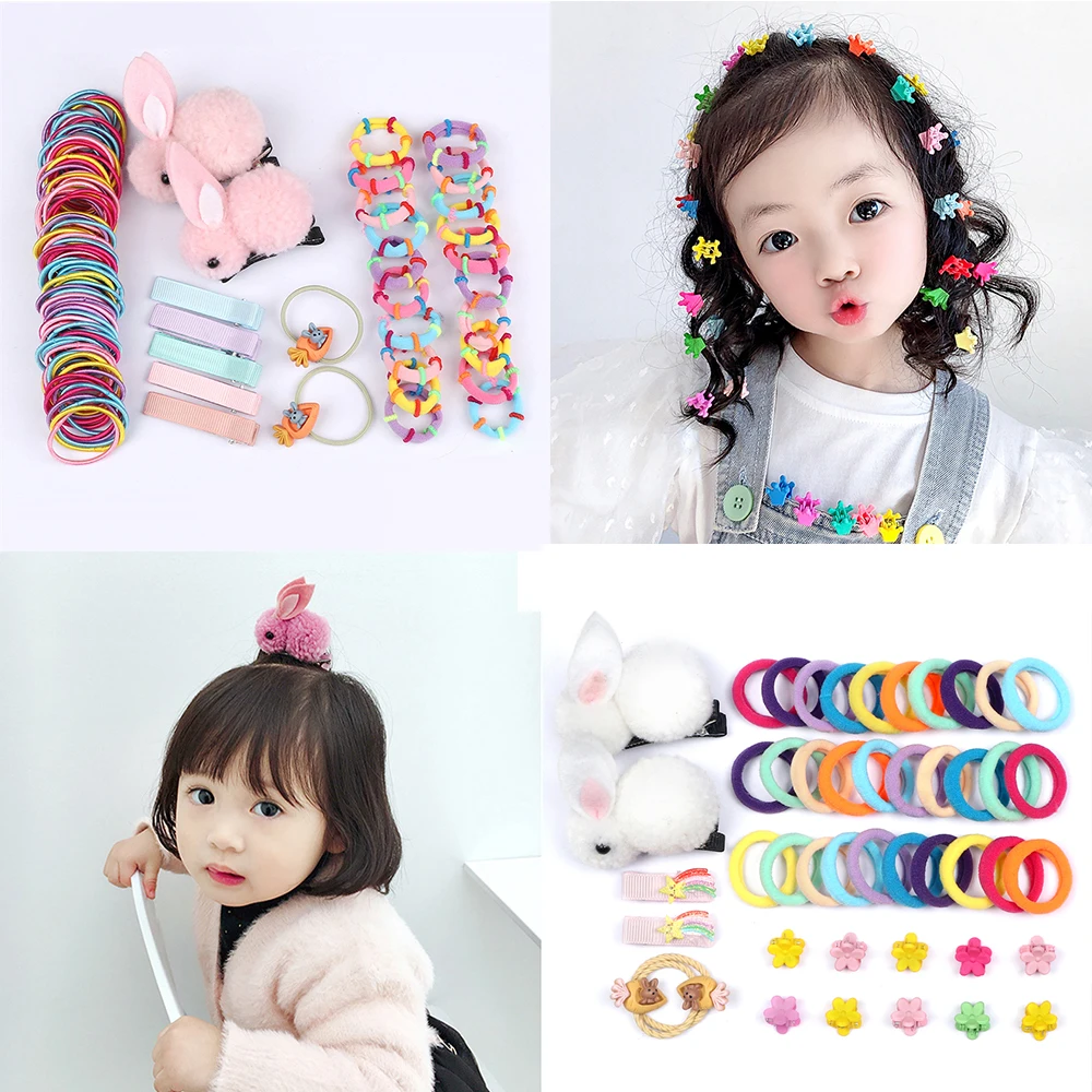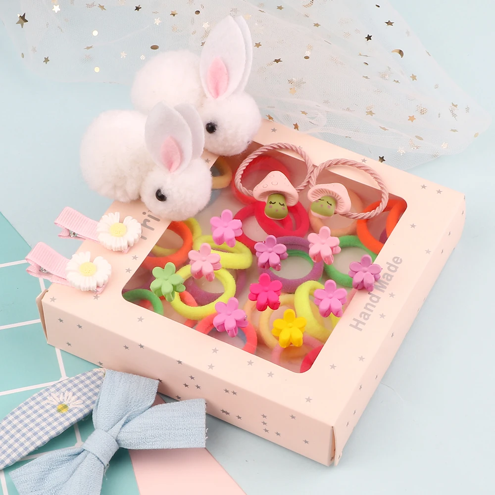 Детская повязка для волос, зажим для волос, набор аксессуаров, милая мультяшная заколка для волос с кроликом и цветами, мягкая эластичная повязка на голову с помпоном, головной убор сделай сам для девочек