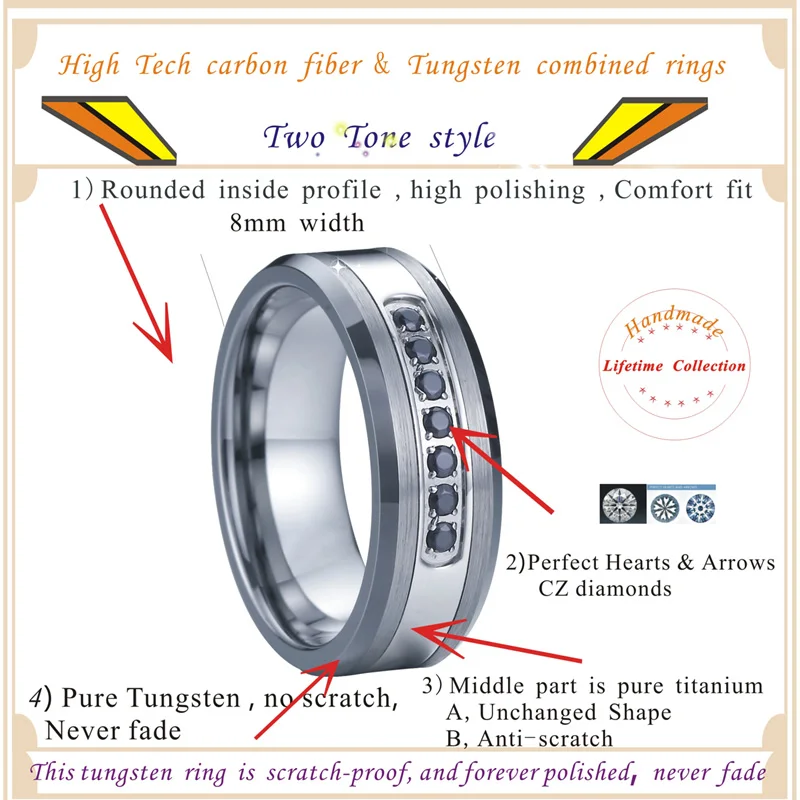 Вольфрамовое кольцо, обручальное кольцо с бриллиантом cz, годовщина...