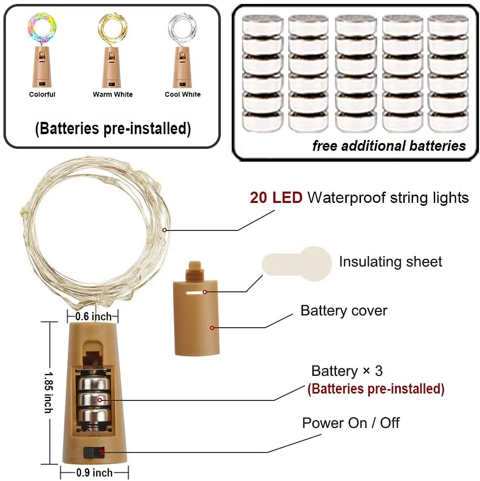 Светильники-пробка с батарейкой в комплекте с винной бутылкой, 20 светодиодов, сказочные огни, украшения для вечерние ринки, свадьбы, Рождества, Хэллоуина, бара, 3 шт.6 шт.
