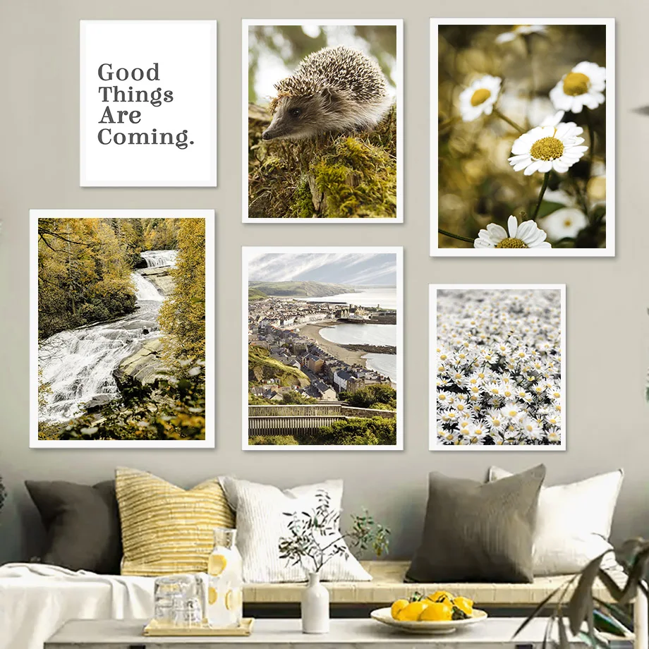 Горы река океан Дерево Трава пейзаж настенная живопись холст сканди...