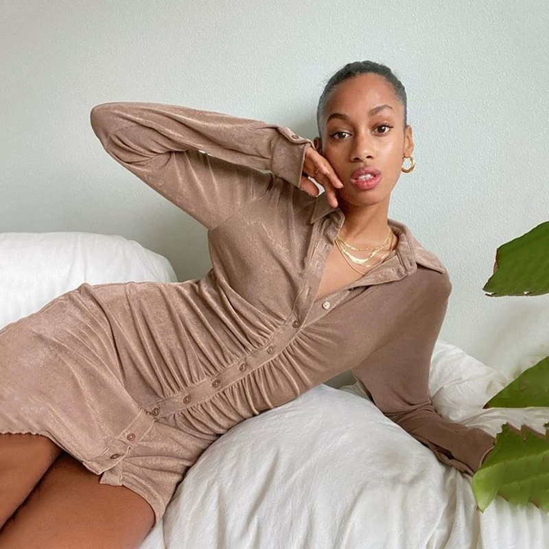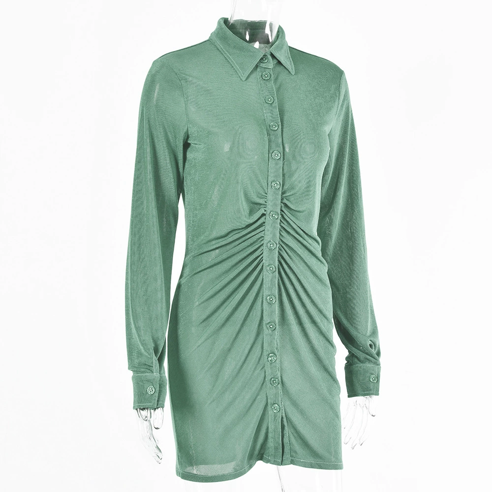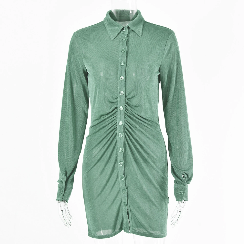 Осеннее офисное женское однотонное мини-платье wsevypo, вечерние платья, женское длинное облегающее платье на пуговицах с рюшами