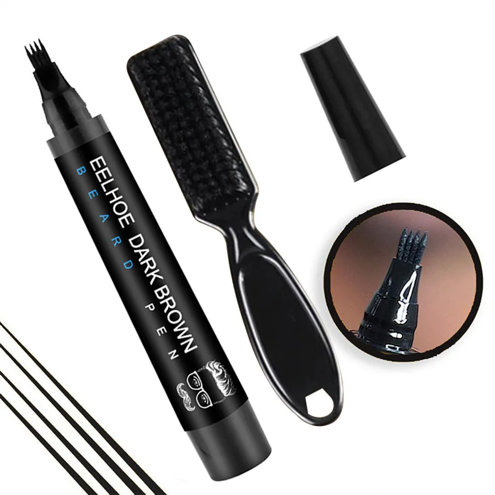 Водонепроницаемый карандаш для бороды для бороды с четырьмя вилками ручка для наполнения бороды с кистью Прочный и долговечный наполнитель для бороды