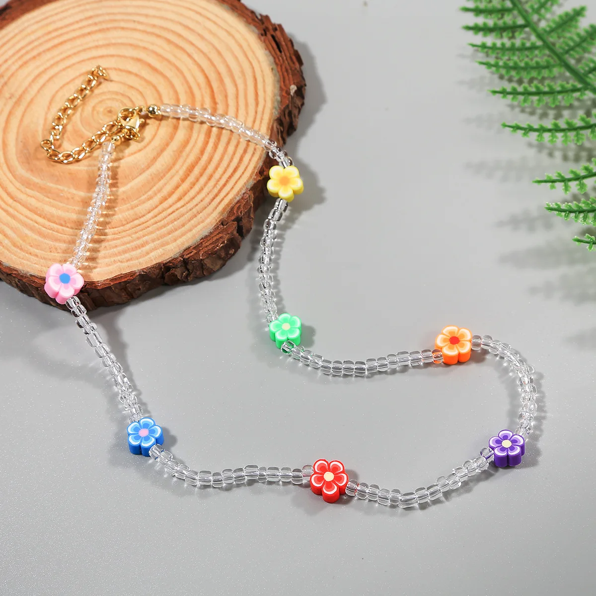 Ожерелье ручной работы из бисера в богемном стиле, красочные цветы,...