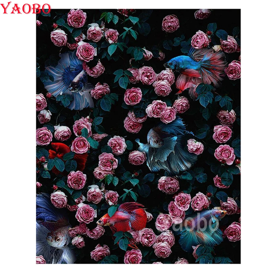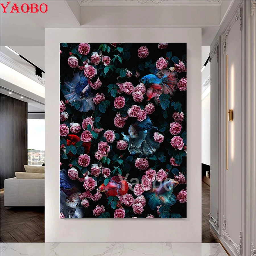 Алмазная живопись с розой и золотой рыбкой, Алмазная мозаика, алмазная вышивка, картина с анималистичным пейзажем для украшения детской комнаты