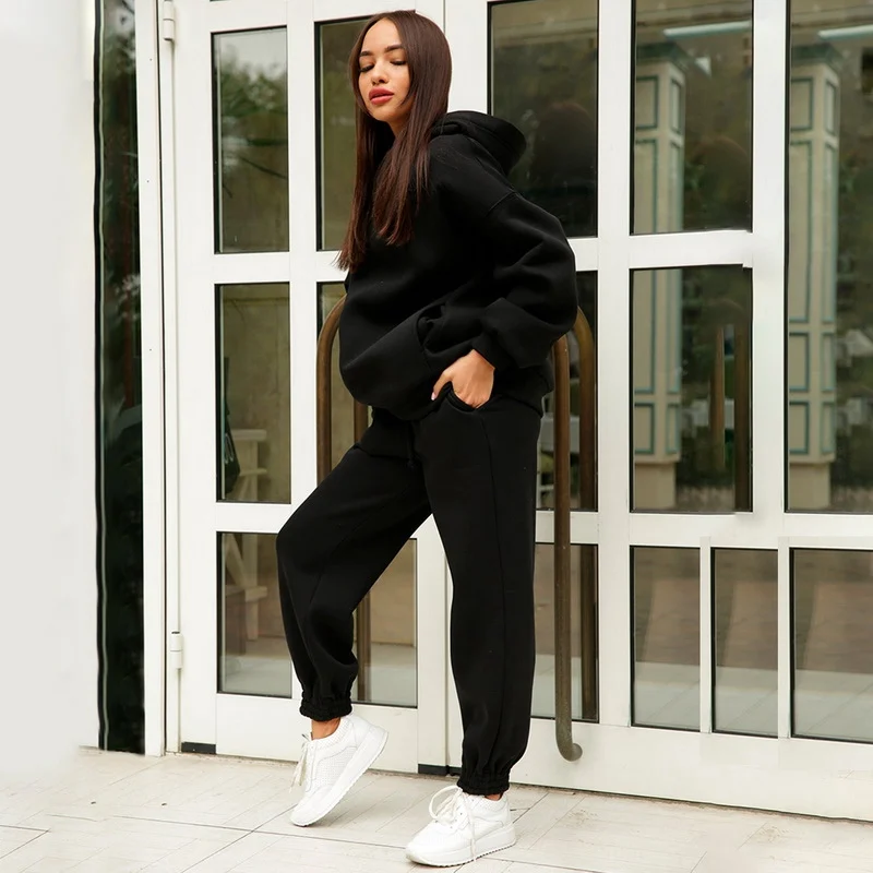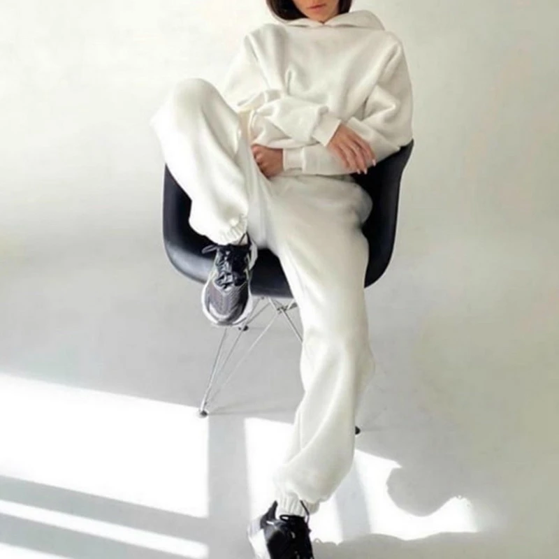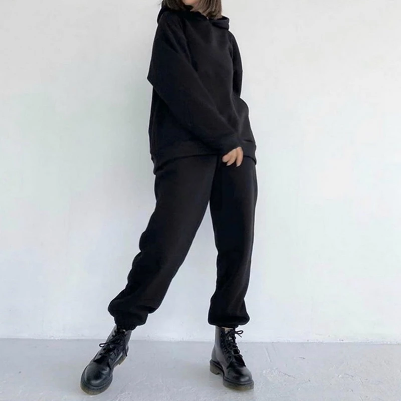 Женский спортивный костюм из двух предметов, зеленые однотонные пуловеры с капюшоном и спортивные штаны, повседневная одежда для отдыха, осень 2021