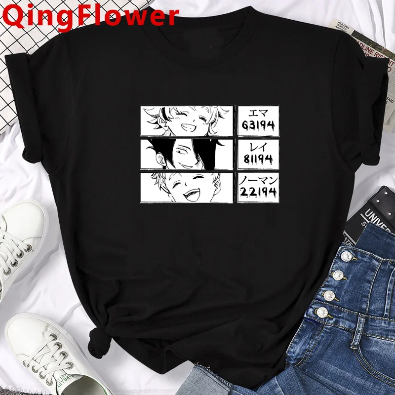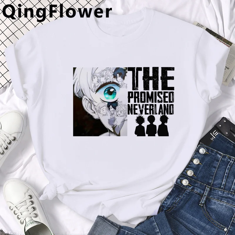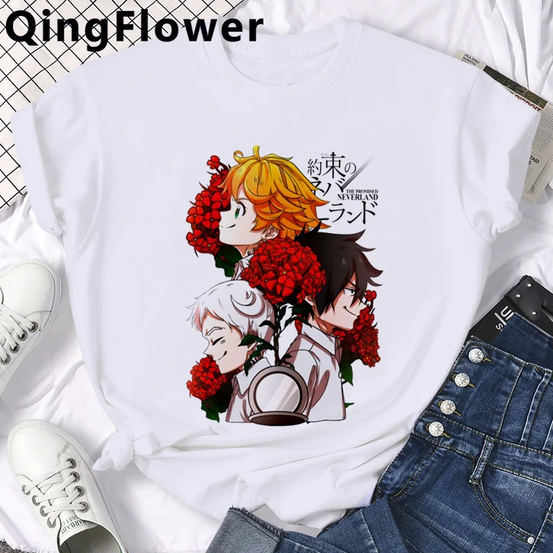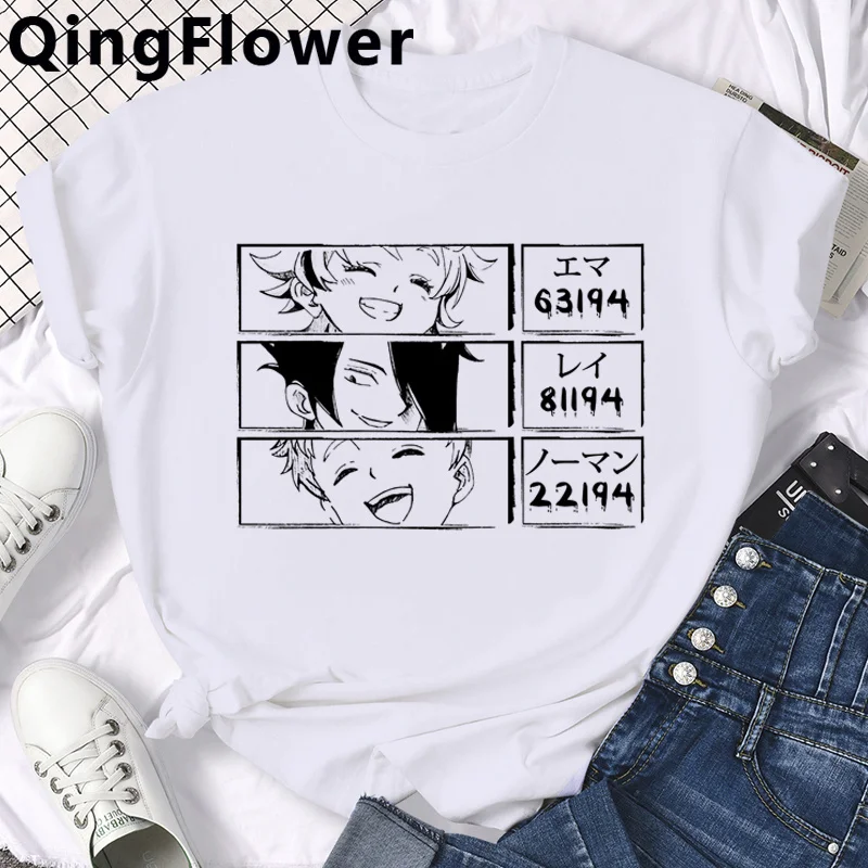 Футболка мужская с рисунком аниме обещал неверланд, белая винтажная одежда в японском стиле, топ с графическим принтом для женщин, ulzzang