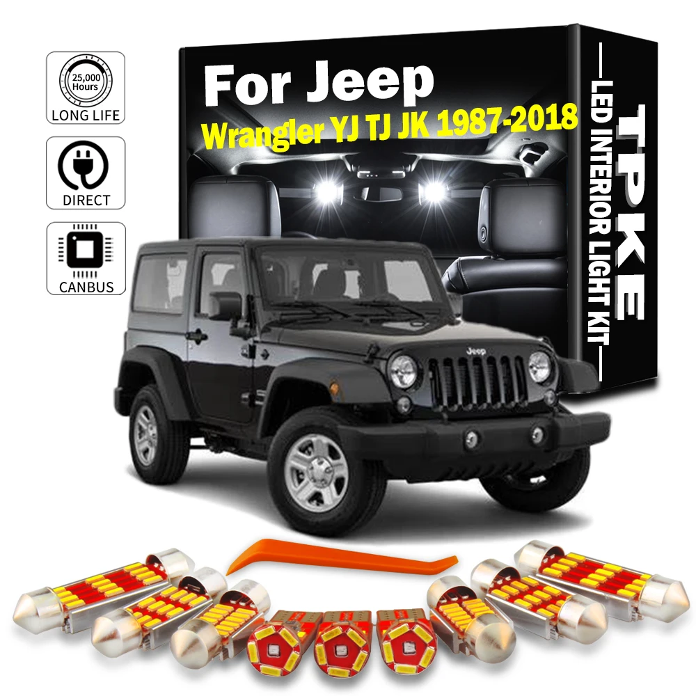 Автомобильные аксессуары TPKE, Белый светодиодный комплект для внутреннего освещения для Jeep Wrangler YJ TJ JK 1987-2017 2018 Canbus, карта багажника, номерной знак, лампа