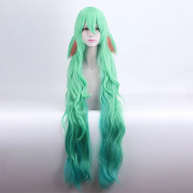 43 дюйма 110 см длинный зеленый синий косплей парик LOL Косплей звезда Хранитель сорака термостойкие волосы парик + уши