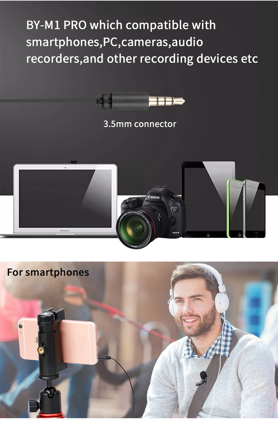 BOYA BY-M1 Pro-Универсальный микрофон lavalier, совместимый со смартфонами, ПК, камерами, аудиозаписывающими устройствами и другими записывающими устройствами etcOn, компактный корпус, есть несколько специальных и полезных функций, которые отличают BY-M1 Pro от других общих микрофонов на рынке. With-10db переключатель, эффективно уменьшает нежелательные задумки, когда звуковая подсказка очень громкая и близко к микрофону, убедитесь, что терморегуляция всегда чистая. С разъемом для наушников 3/8 на нижней части, он позволяет пользователям контролировать звук в smartphonemode.