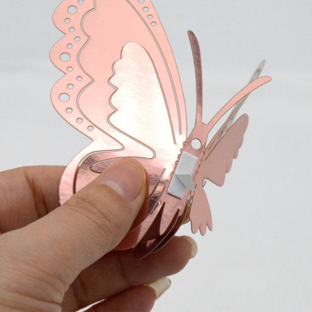 12 шт.компл. металлическая текстура, вырезанная бабочка, наклейка на стену, трехмерная бабочка, имитация украшения бабочки для дома