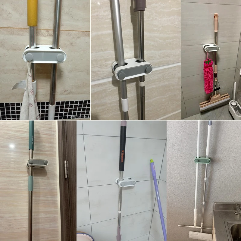 Настенный пластиковый держатель для швабры, с двойной пряжкой
