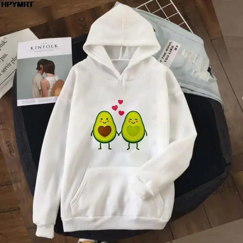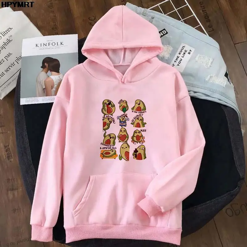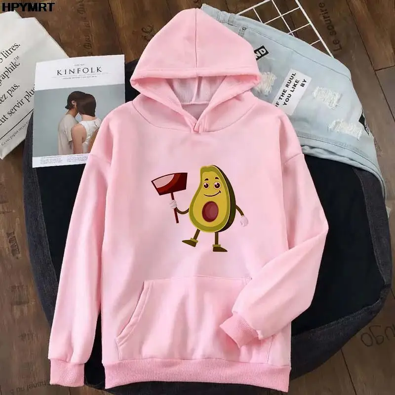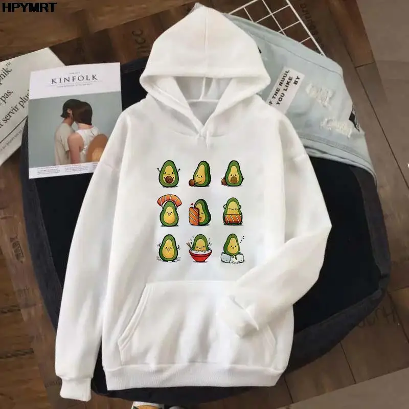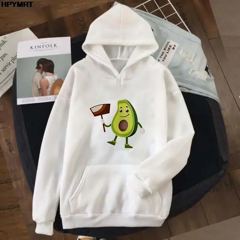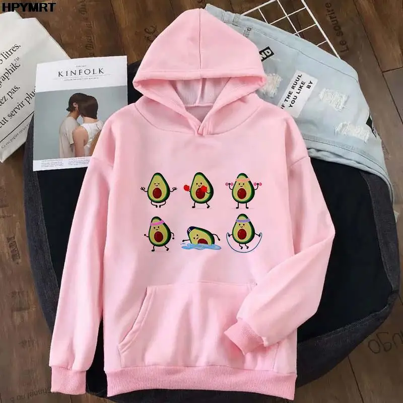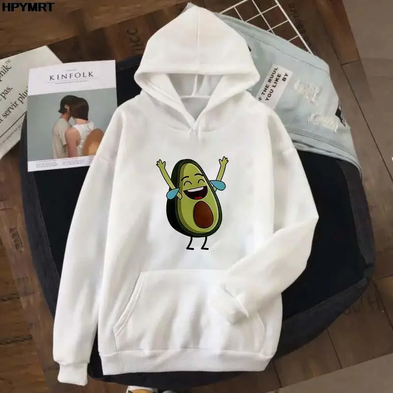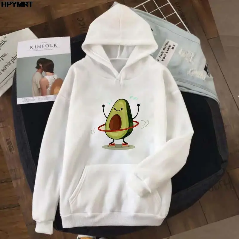 Женская теплая толстовка с капюшоном и принтом авокадо, в стиле Харадзюку