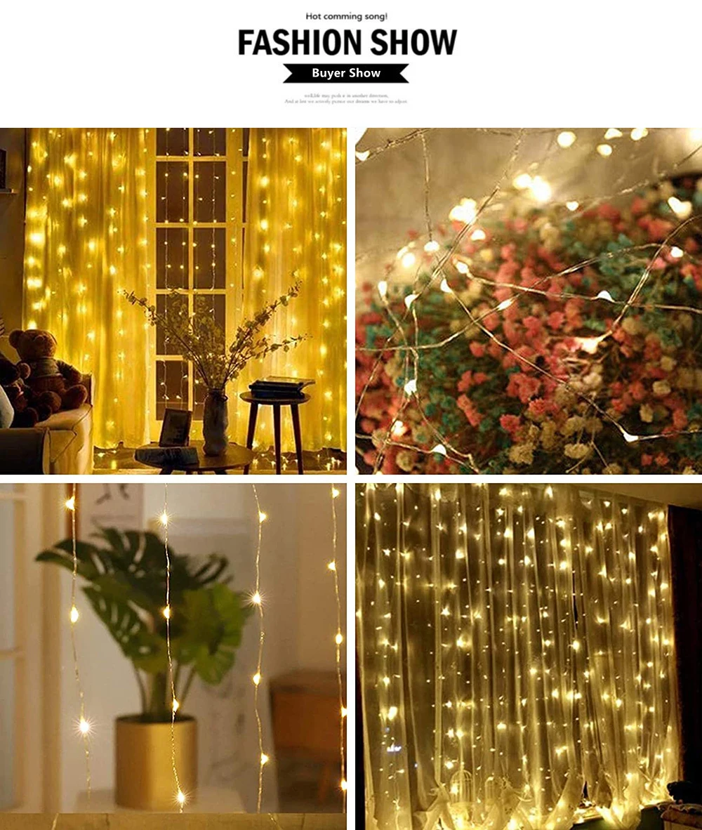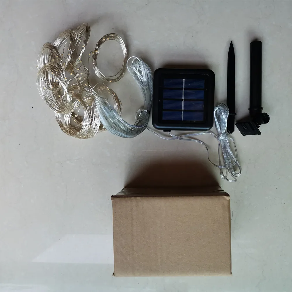● Название бренда: LANFUSTORE01.● Наименование товара: гирлянды на солнечной энергии, светодиодные гирлянды.● Технические параметры:3 м X 1 м 100 светодиодов;3 м X 2 м 200 светодиодов;3 м X 3 м 300 светодиодов.● Функция: 8 режимов работы светодиодный.● Материал: медная проволока + светодиодный светильник.● Водонепроницаемость: IP65.● Светодиодный цвет: синий/белый/многоцветный/теплый белый/зеленый/красный/фиолетовый/розовый/другой цвет, длина может быть настроена.● Источник питания: солнечная энергия.● Солнечная панель: 2 в 800 мАч.● Тип солнечных батарей: монокристаллический кремний.● Сертификация: CE & RoHS.● Продолжительность жизни: 50000 часов.