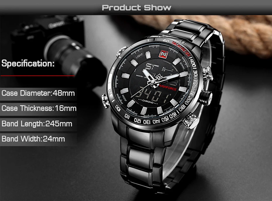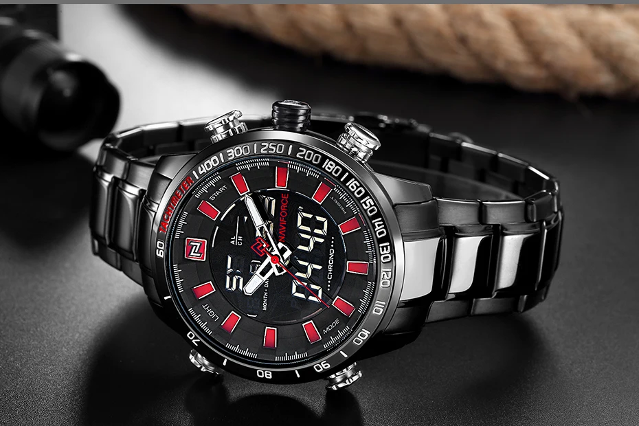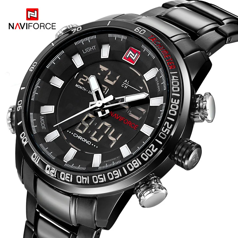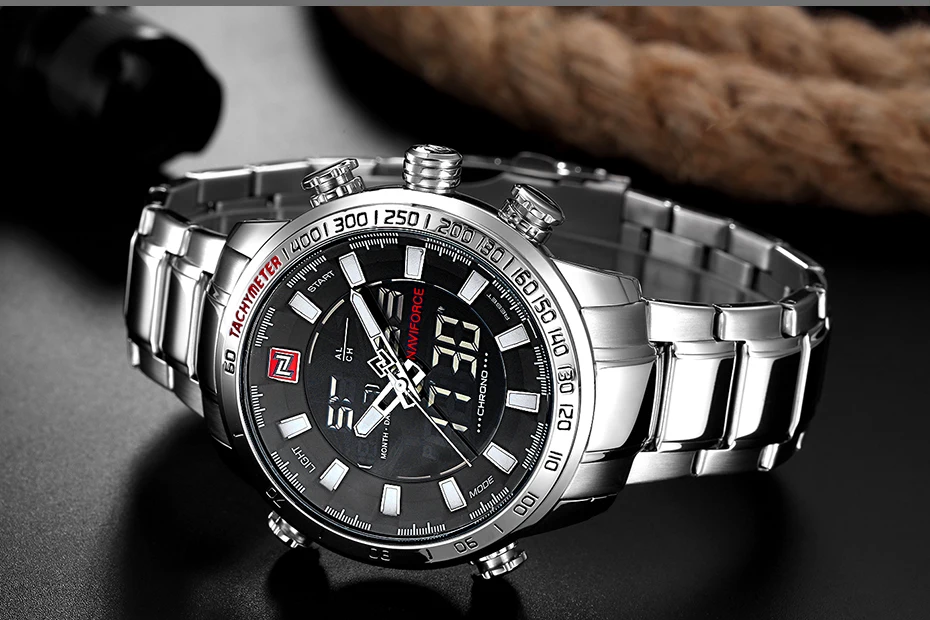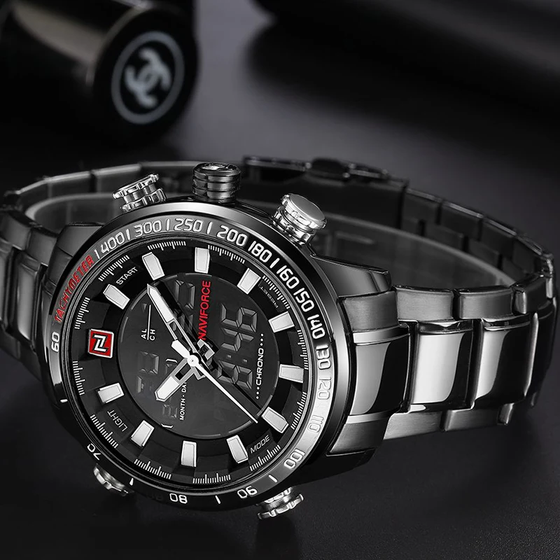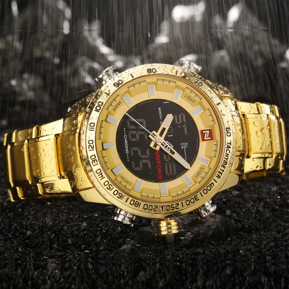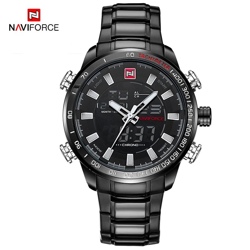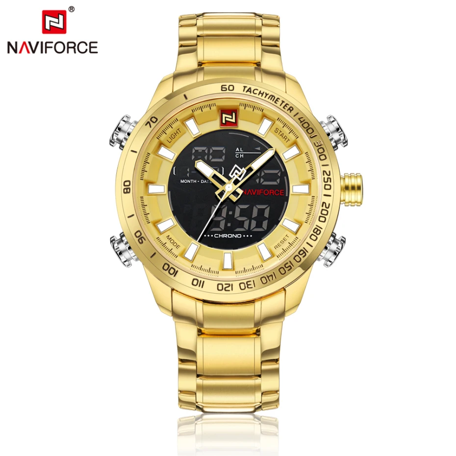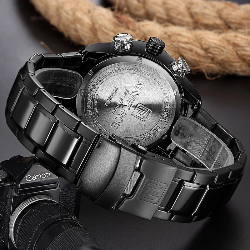 Часы наручные NAVIFORCE Мужские кварцевые, Брендовые спортивные в стиле милитари, водонепроницаемые из нержавеющей стали с хронографом