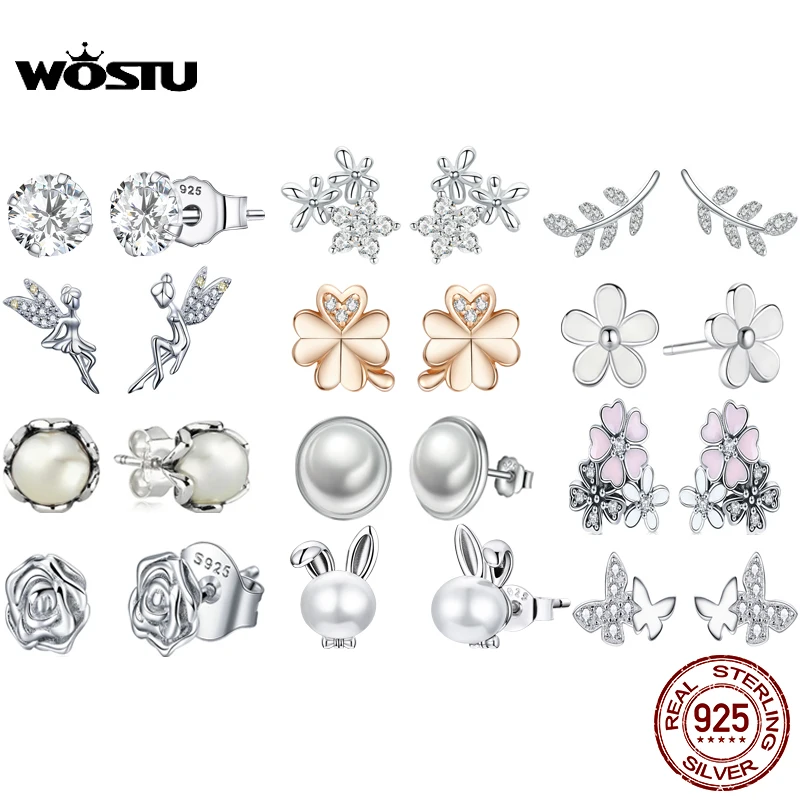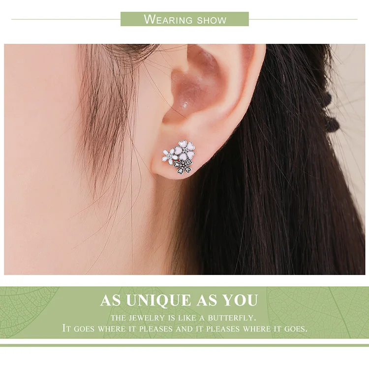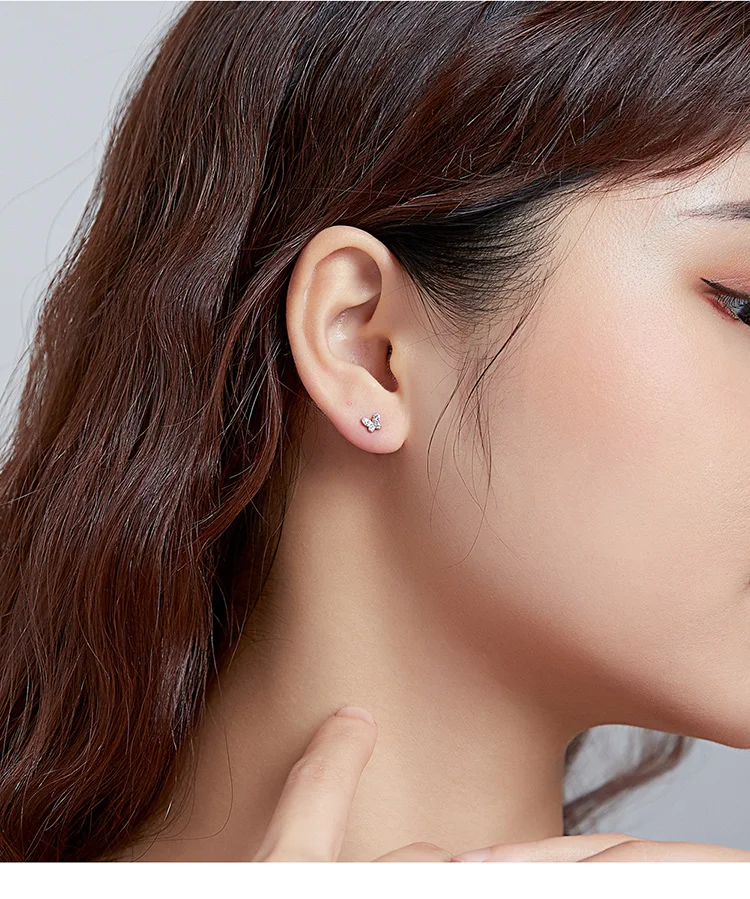 Серьги женские из серебра 925 пробы, с цветком и бабочкой