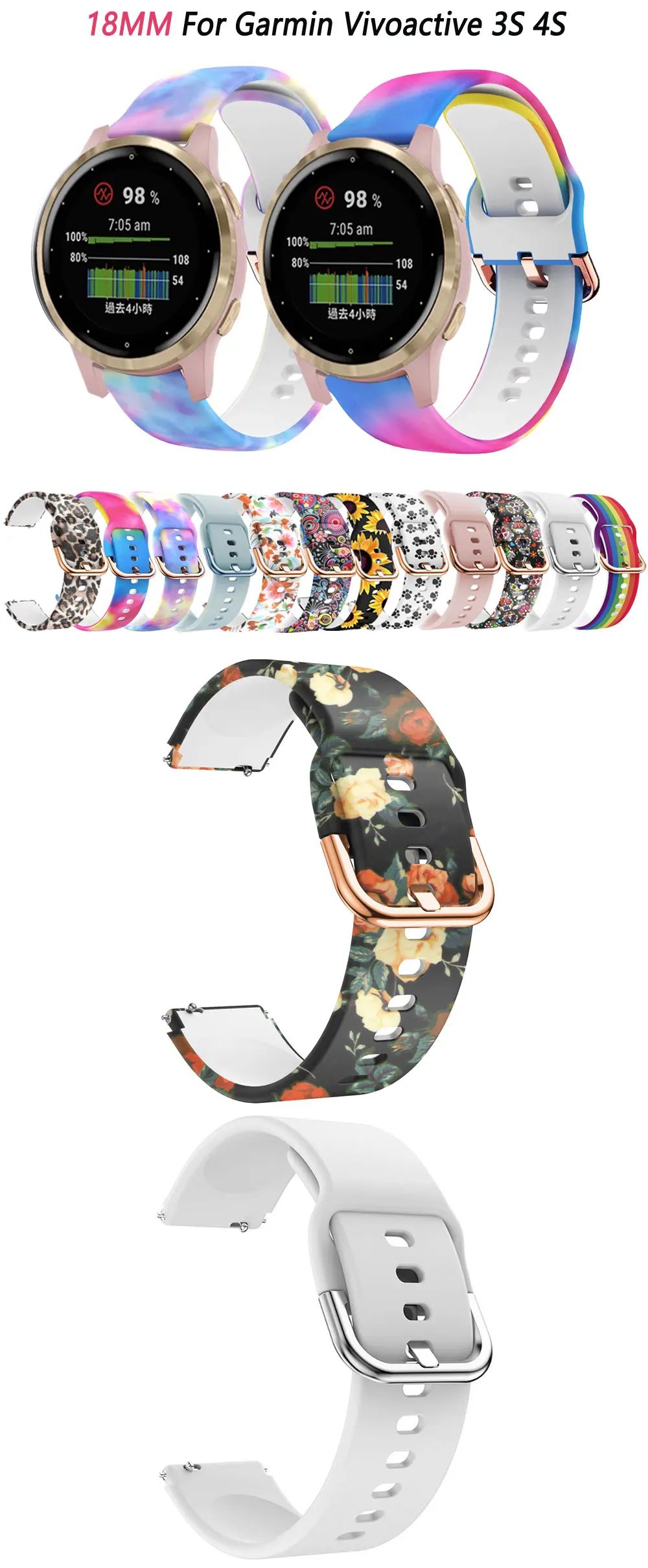 Умный Популярный силиконовый ремешок с принтом 18 мм для Garmin ✮2 S/Active S, для Garmin Vivomove 3S/Move 3S, розовое золото, пряжка, наручные часы, оригинальный ремешок для Amazfit GTS 2/GTR 2E/BIp силиконовые ремешки S U для браслета Garmin vivant-Luxe/Vivoactive 3t-3