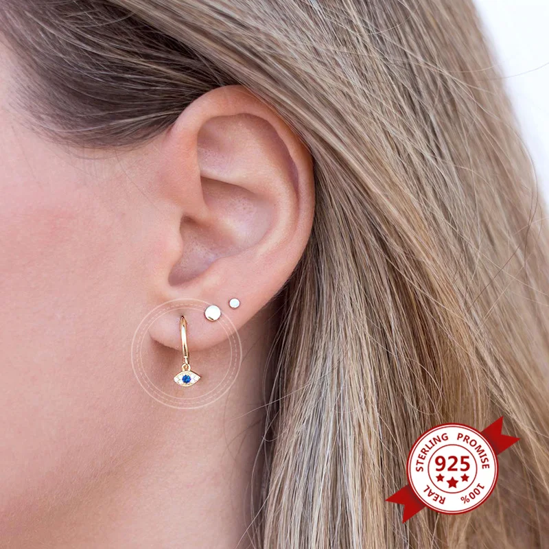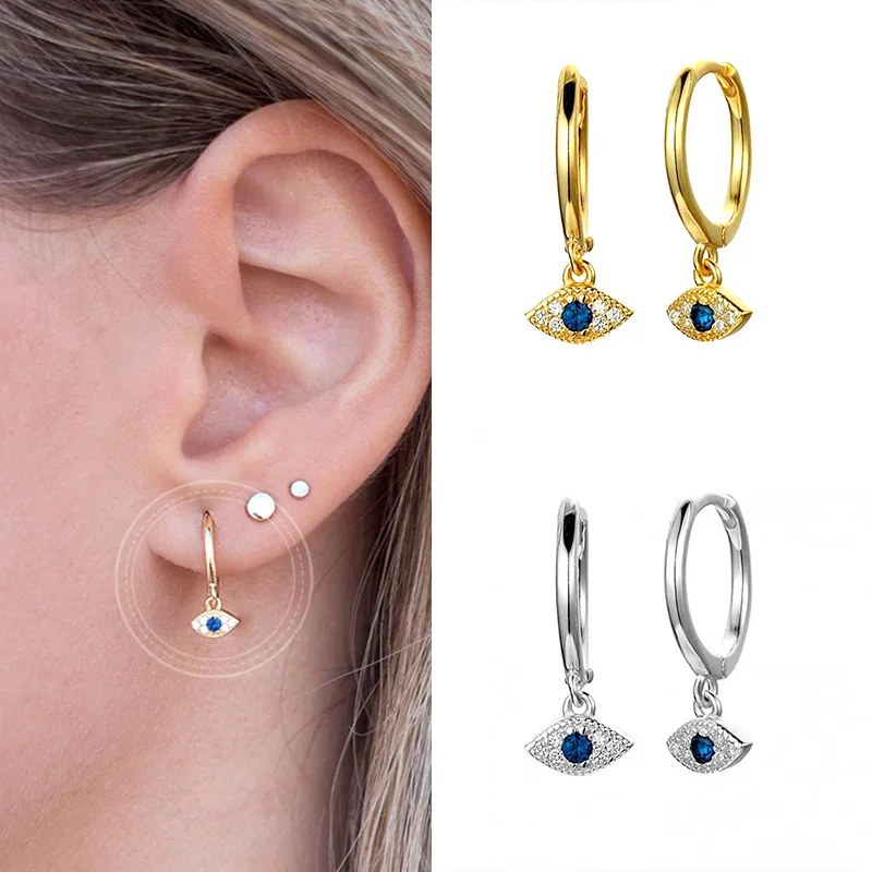Серьги-кольца в европейском и американском стиле Huggie с голубым Ц...