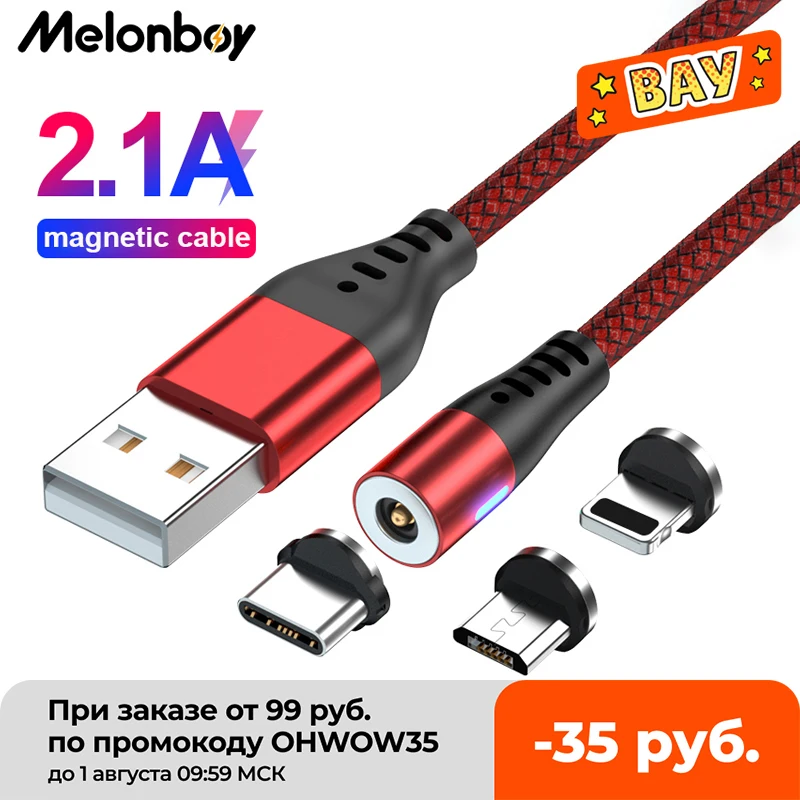 Магнитный кабель Melonboy usb-c, micro usb, для iPhone 12 pro max, Huawei, Xiaomi, Android