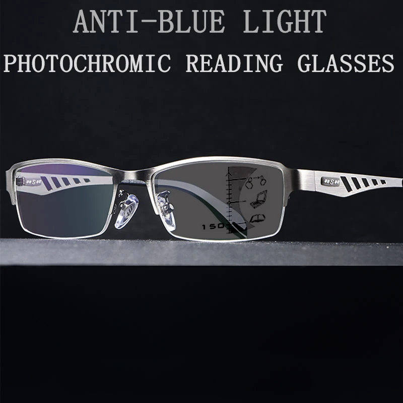 Высококачественные умные фотохромные многофокальные очки для чтения мужские очки с прогрессивным увеличением очки с полной оправой очки от + 1,0 до 40
