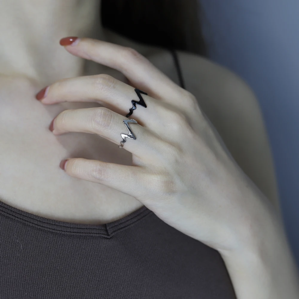 Простое Изогнутое Кольцо в стиле панк черно-белое кольцо с молнией для пар кольцо с ЭКГ высокой и низкой высотой мужские и женские ювелирные изделия оптовая продажа