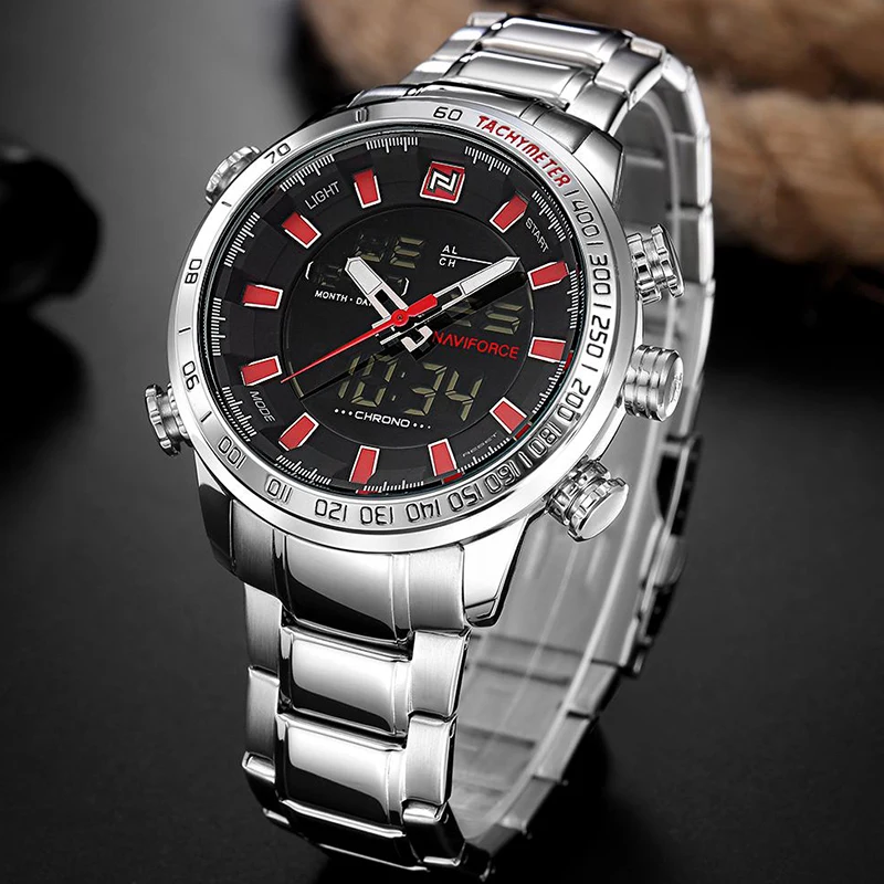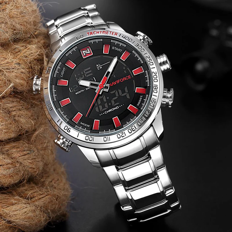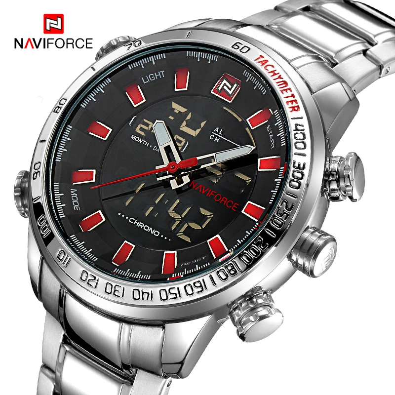 2021NAVIFORCE спортивные Брендовые мужские военные роскошные часы мужские цифровые часы полностью Стальные наручные часы светодиодный дисплей мужские часы