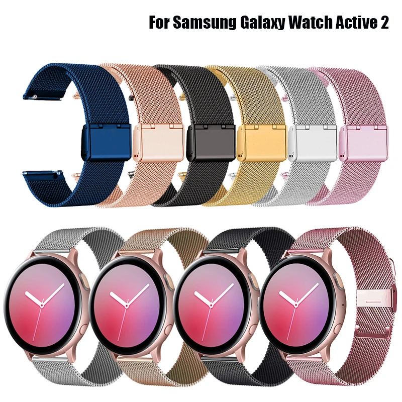 Ремешок металлический для Samsung Galaxy Watch Active 2, браслет из нержавеющей стали для Samsung Gear S2 ClassicSport, 20 мм 40 мм 44 мм