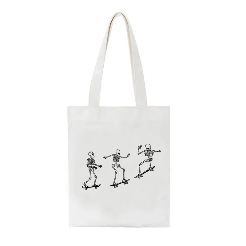 Холщовая Сумка-скелетоны для скейтборда, Повседневная модная вместительная сумочка для покупок с мультипликационным принтом, женская сумка на плечо в стиле Харадзюку