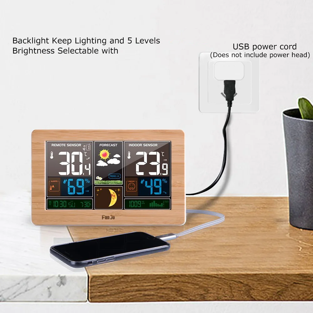 Цифровая метеостанция FanJu, большой термометр, гигрометр, барометр, беспроводной сенсорный прибор для дома и улицы, настенные настольные часы