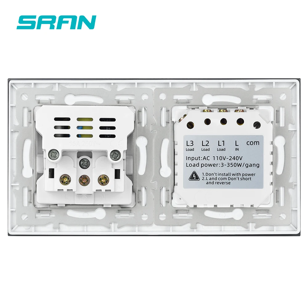 Сенсорный выключатель SRAN, розетка с Usb, вертикальная установка, Хрустальная стеклянная панель 153*82, розетка светильник ключателем света, 3 комплекта, 1 канал