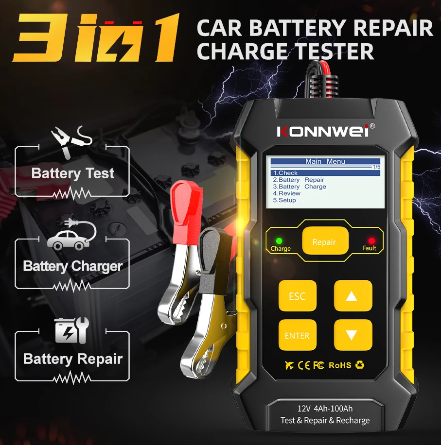KONNWEI KW510 Typecar battery charger tester repair tool