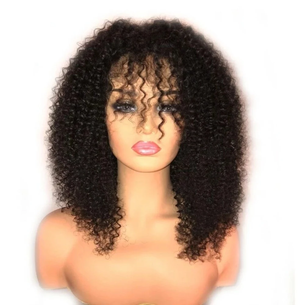 Кудрявые вьющиеся парики из человеческих волос с челкой, бразильски...