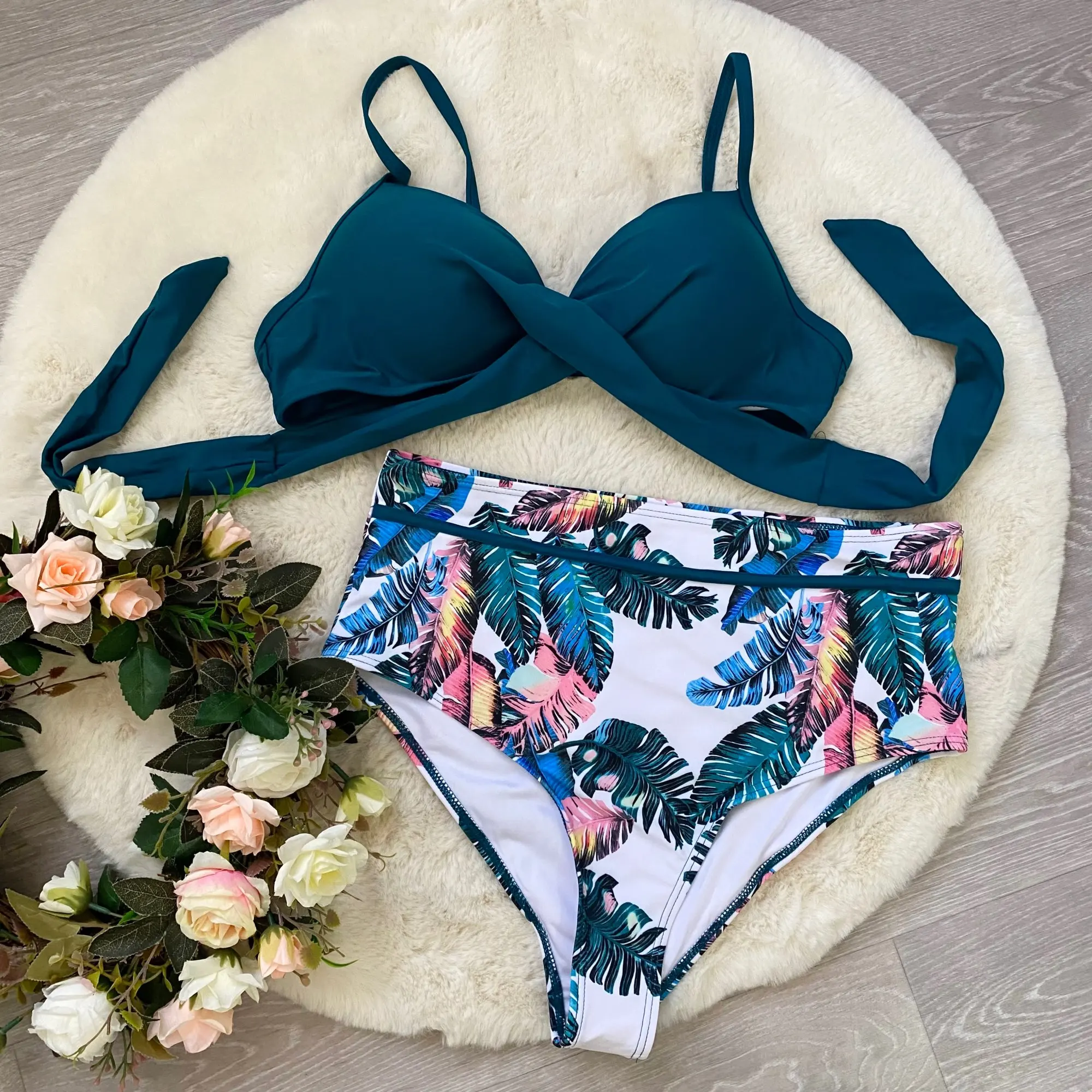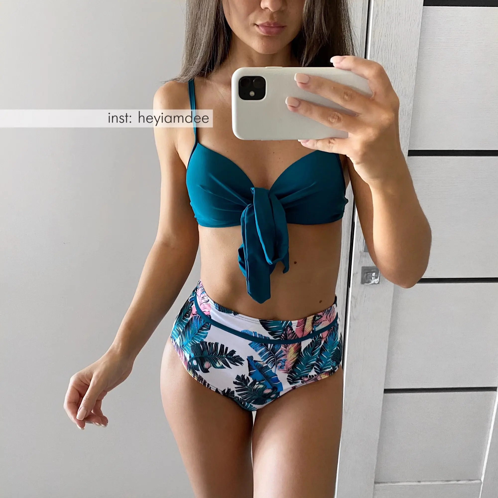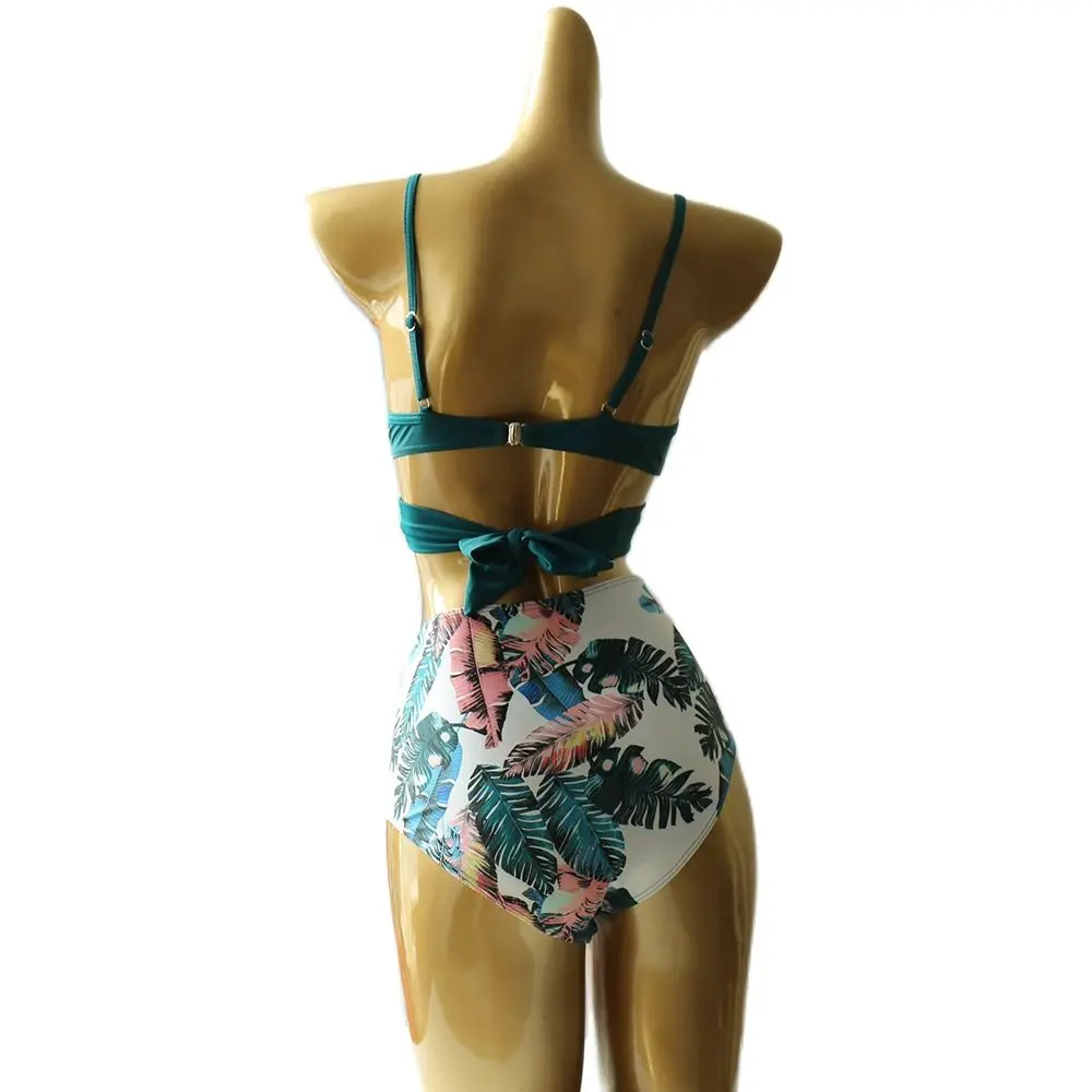 Купальник-бикини с чашками пуш-ап и цветочным принтом