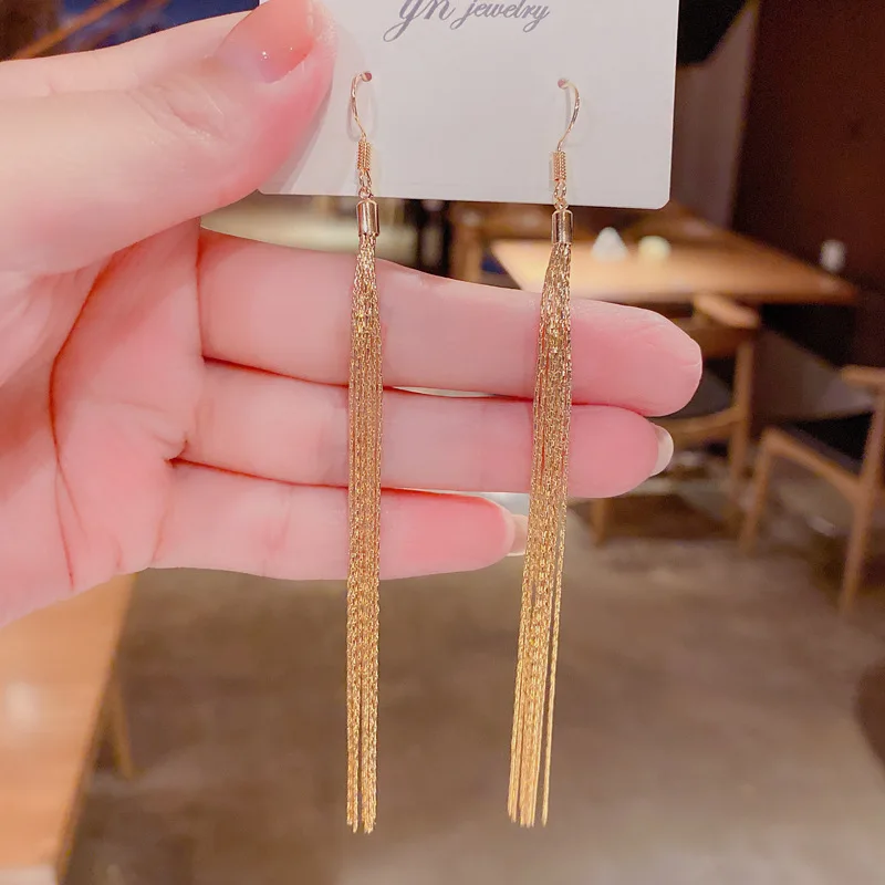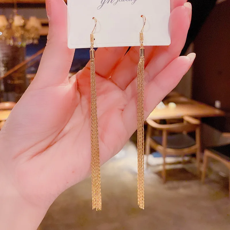 10 шт., позолоченные серьги-подвески из нержавеющей стали, 8 см