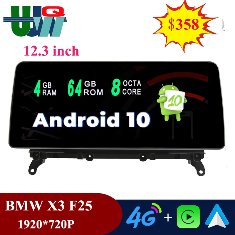 Автомагнитола UJQW, 12,3 дюйма, Android 10,0, 1920*720, для BMW X3, F25, X4, F26, CIC, NBT, Carplay, GPS, 4G, BT, Wi-Fi, мультимедийное видео