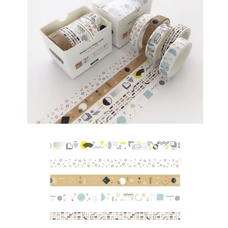 Клейкая лента Washi 5 шт.компл., милая сетка, однотонная, базовая с...