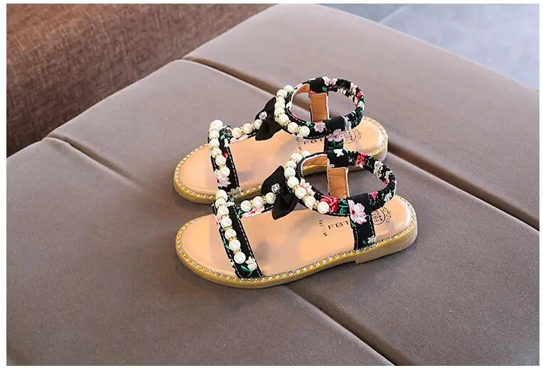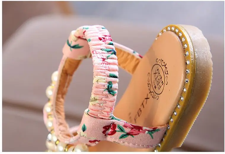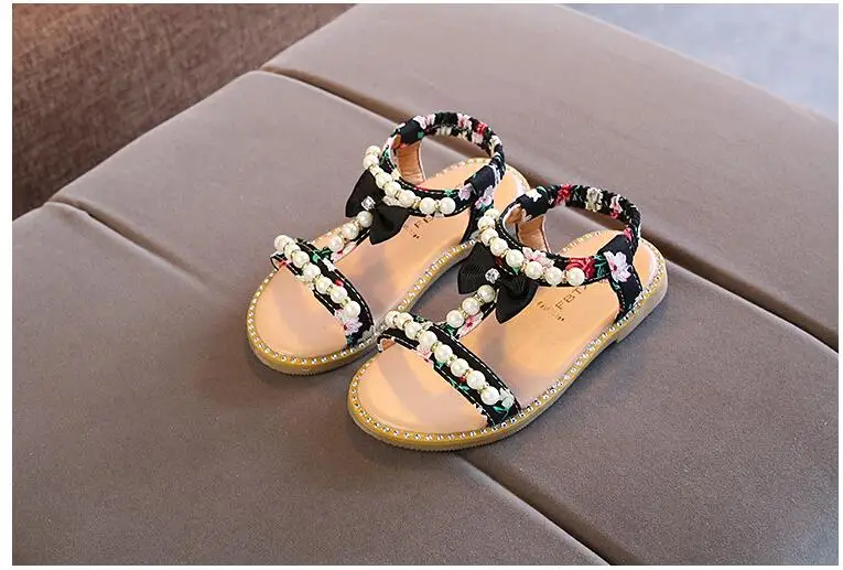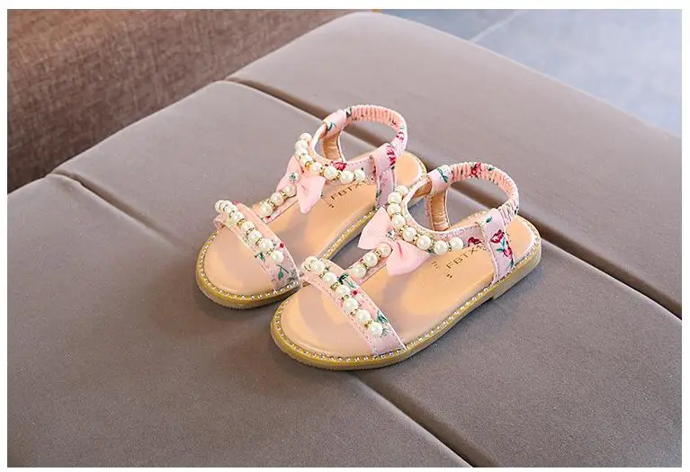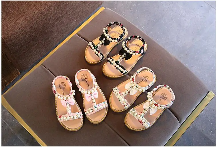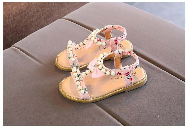 Детская обувь для девочек, новые летние сандалии, детские пляжные сандалии на танкетке с жемчугом и бисером, Детская школьная обувь на плоской подошве для малышей