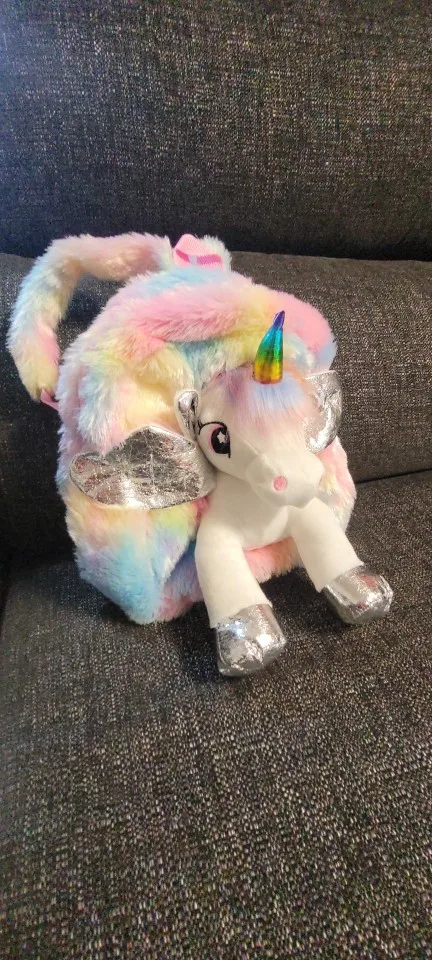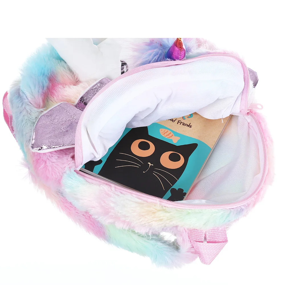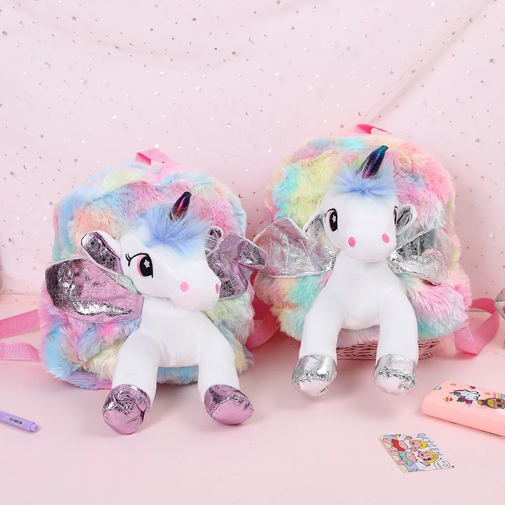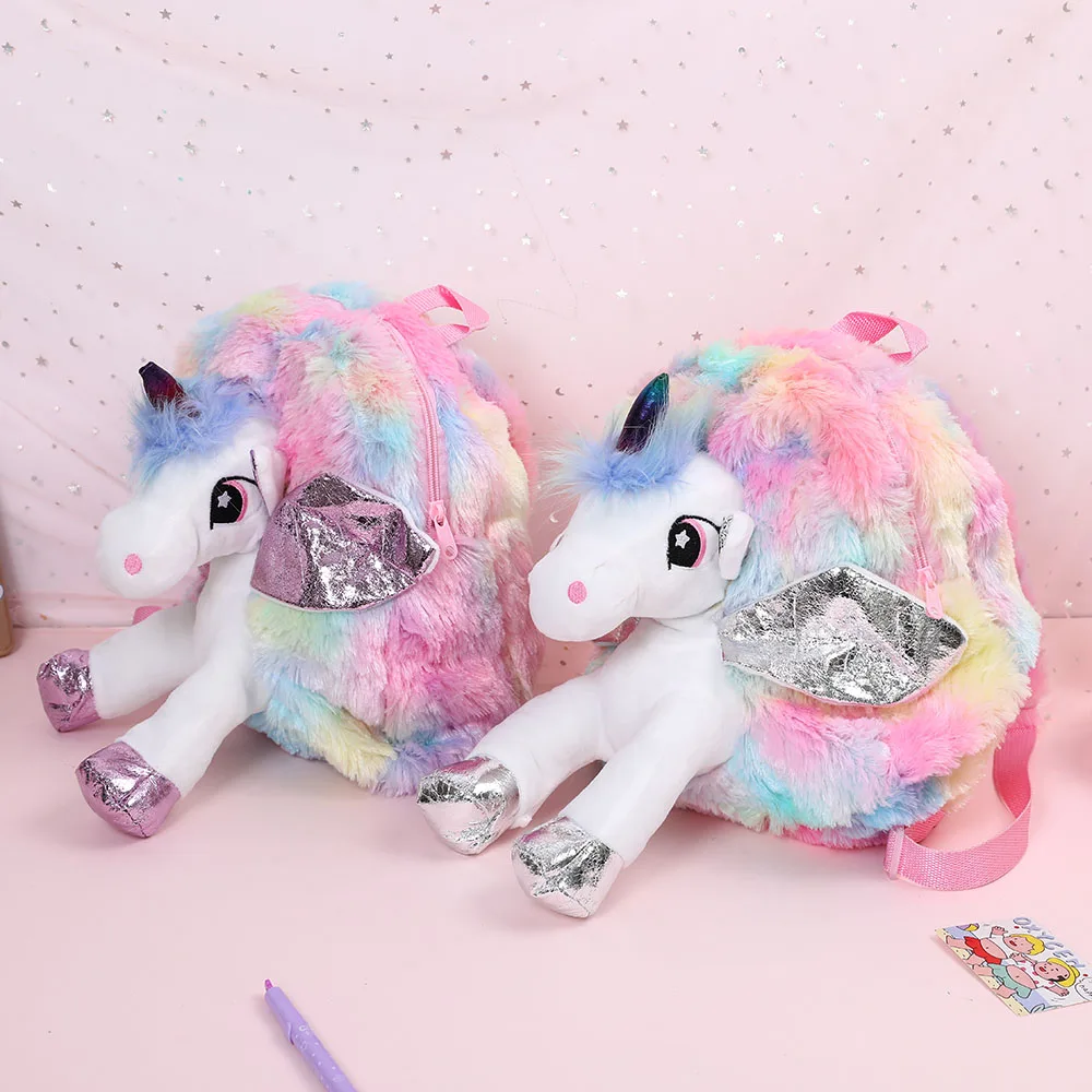 Плюшевая школьная сумка с 3D единорогом, милый меховой школьный рюкзак с мультяшным рисунком для девочек, игрушечный рюкзак для кукол для детского сада, подарок для девочек