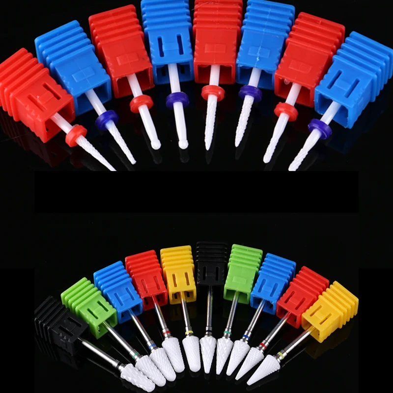 Конусные керамические сверла для ногтей, вращающиеся сверла для фрезы, грубые, средние, мелкие зерна, 332 дюйма, электрические сверла для маникюра